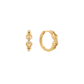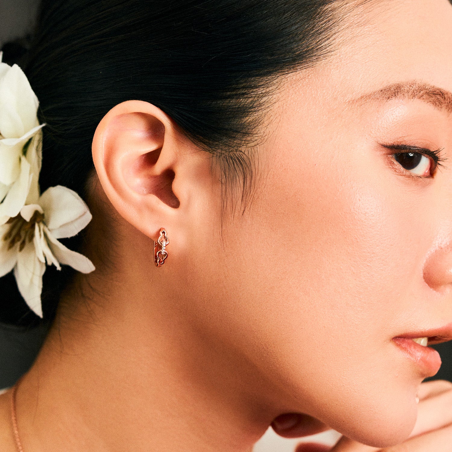 Two bottle gourds for twice the prosperity! The hulu silhouettes on these huggies are connected by a link embellished with cubic zirconia for subtle shine.