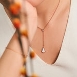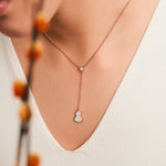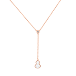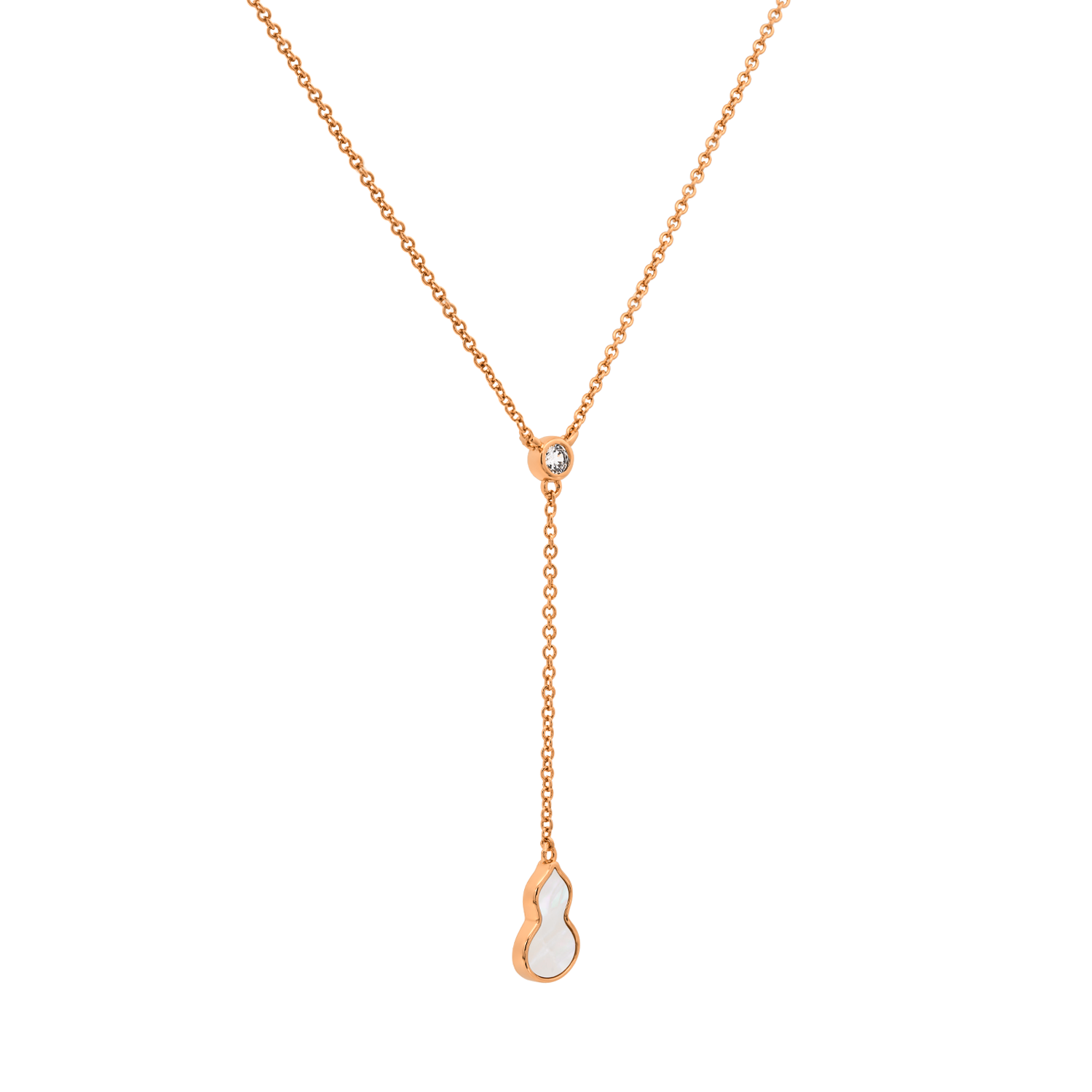 The Blessings Hulu Necklace features a Y-shaped chain embellished with a single cubic zirconia stone, followed by an opalescent mother-of-pearl bottle gourd pendant. An elegant piece to represent blessed and blissful days ahead.