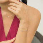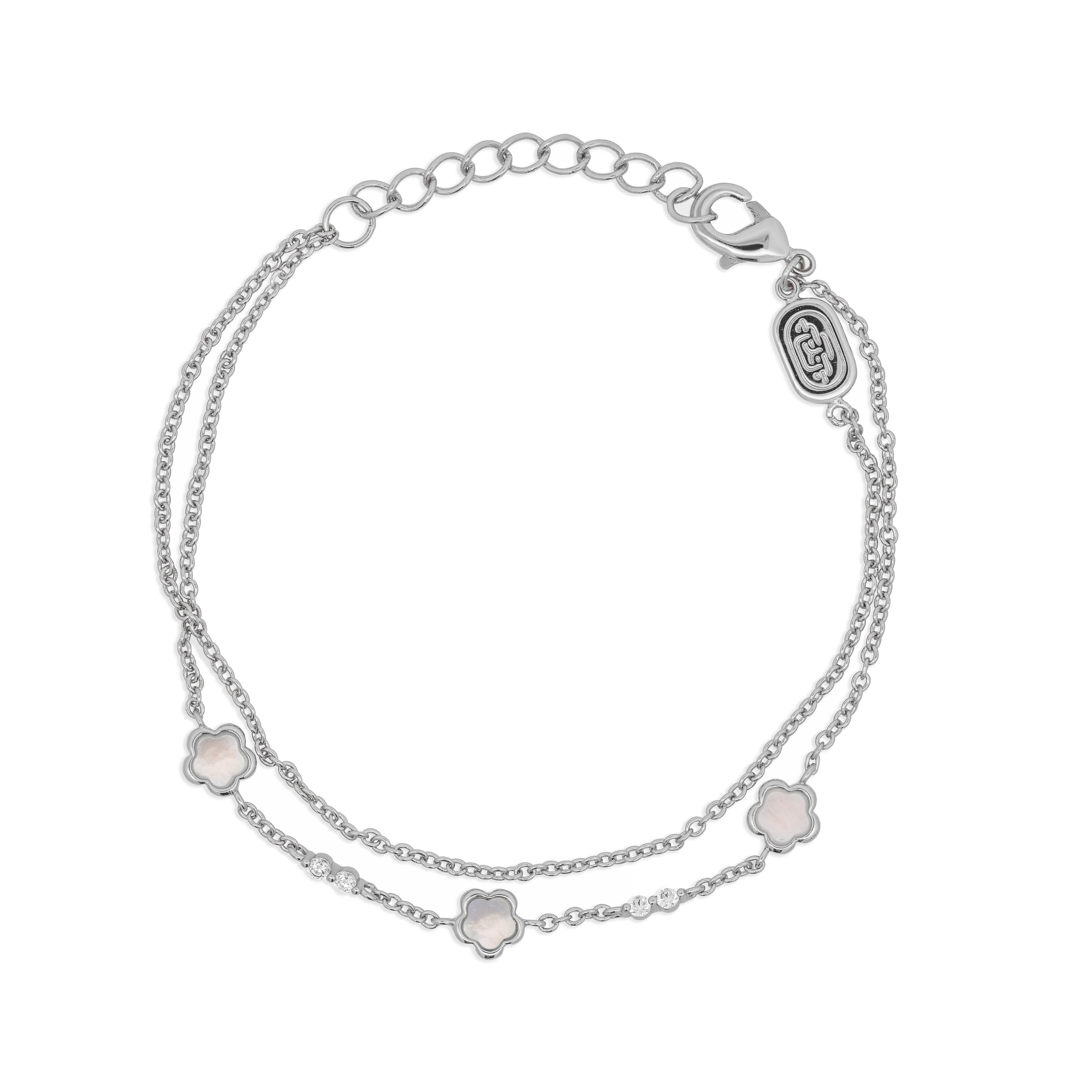 There's so much to love about this bracelet: mini mother of pearl flowers, sparkly cubic zirconia stones and a double chain. Get the full set with its matching necklace.