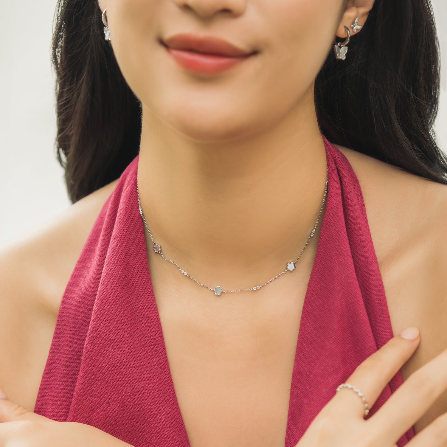This number will make the most gorgeous layering piece. Its mini mother of pearl flowers and subtle sparkle will get you compliments for sure!