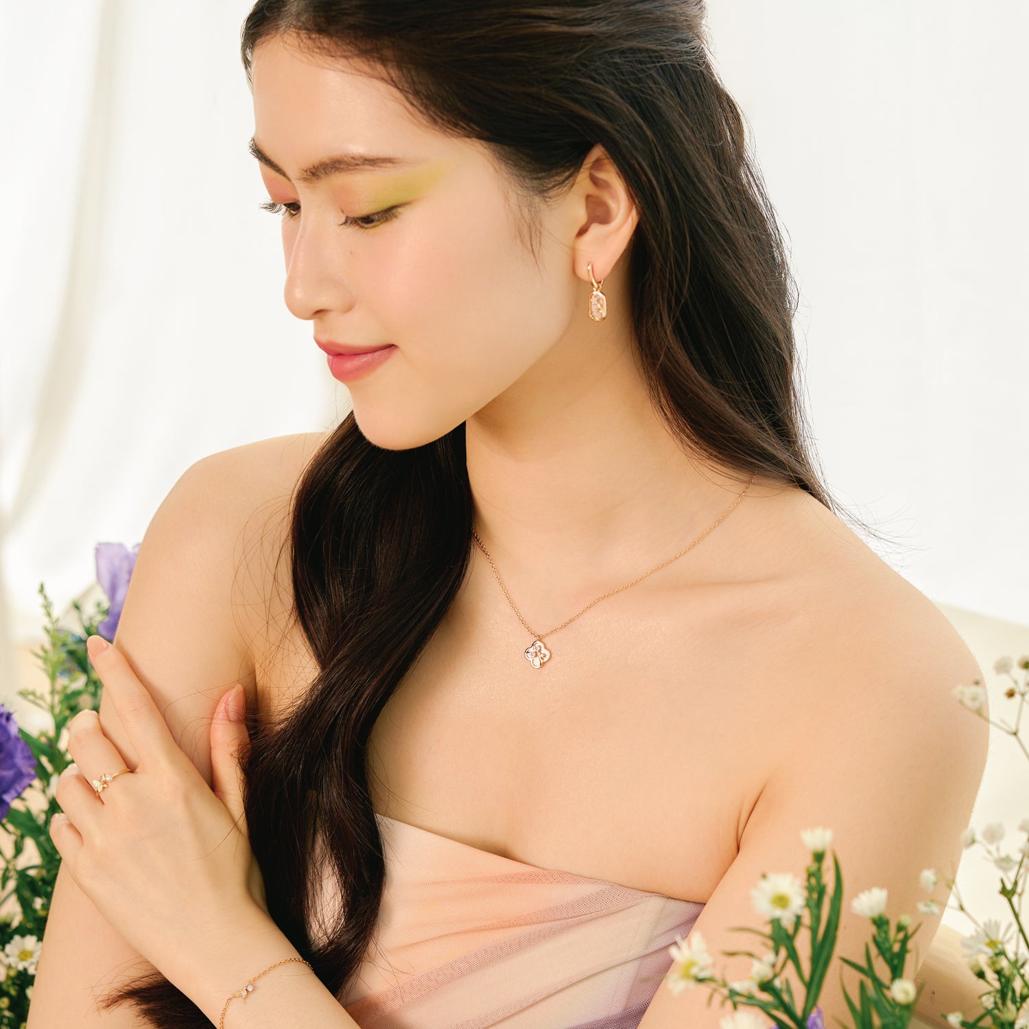 An elegant statement-making necklace with a floral-inspired mother of pearl pendant. Elevate your everyday with Anthea.