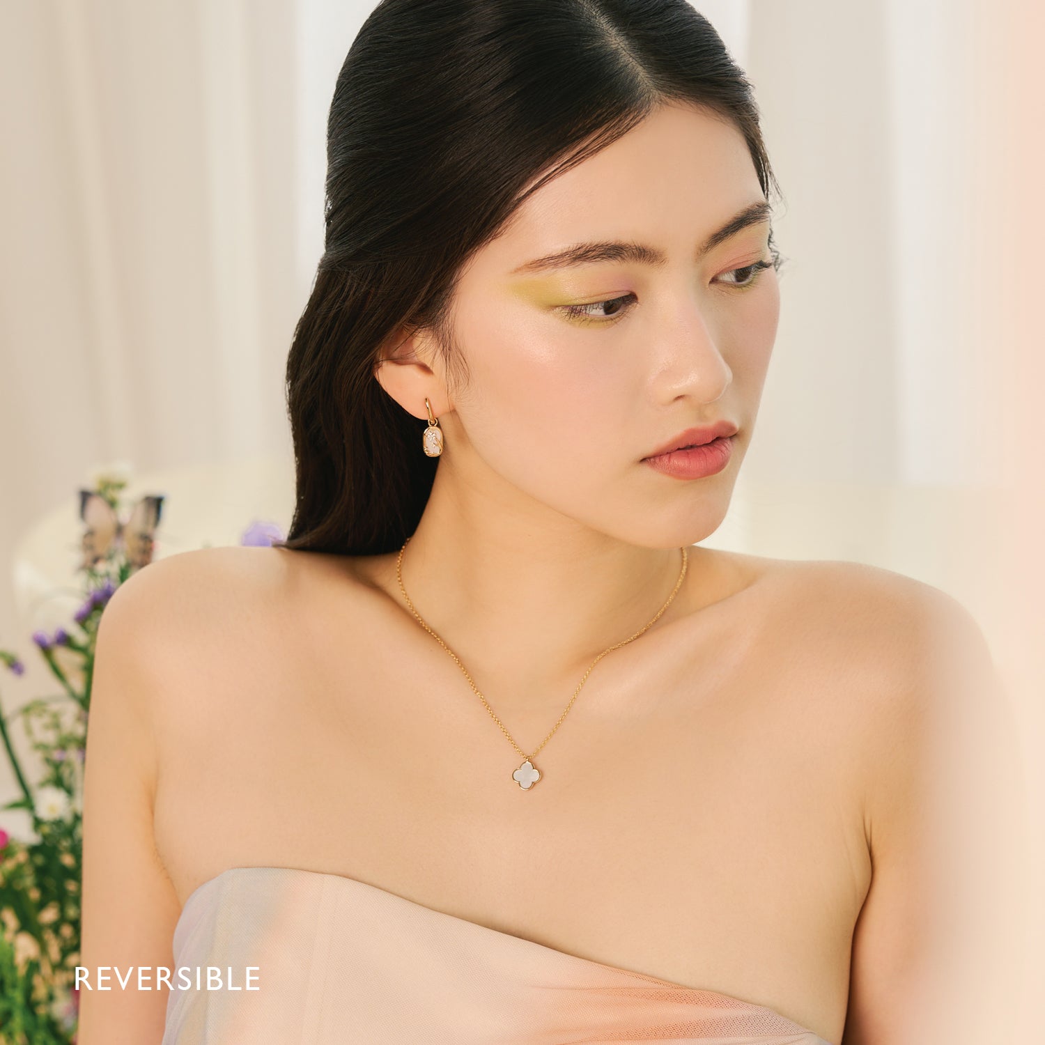 Materials: 18k gold-plated eco-brass, white mother of pearl, cubic zirconia stones