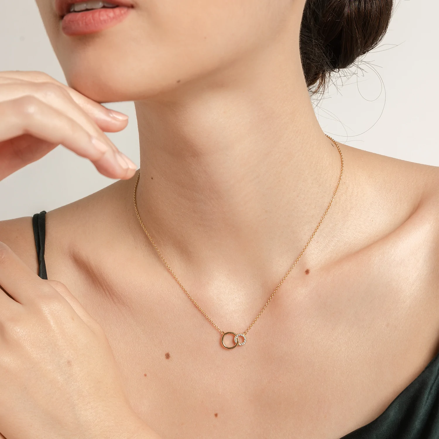 With its unique interlocking rings, the Constance Cubic Necklace is a unique must-have for all minimalists. Whether it's for a casual day out or a glam event, you can never go wrong with this piece.