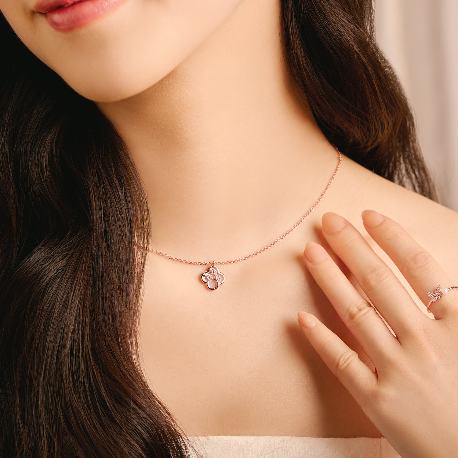 An elegant statement-making necklace with a floral-inspired mother of pearl pendant. Elevate your everyday with Anthea.