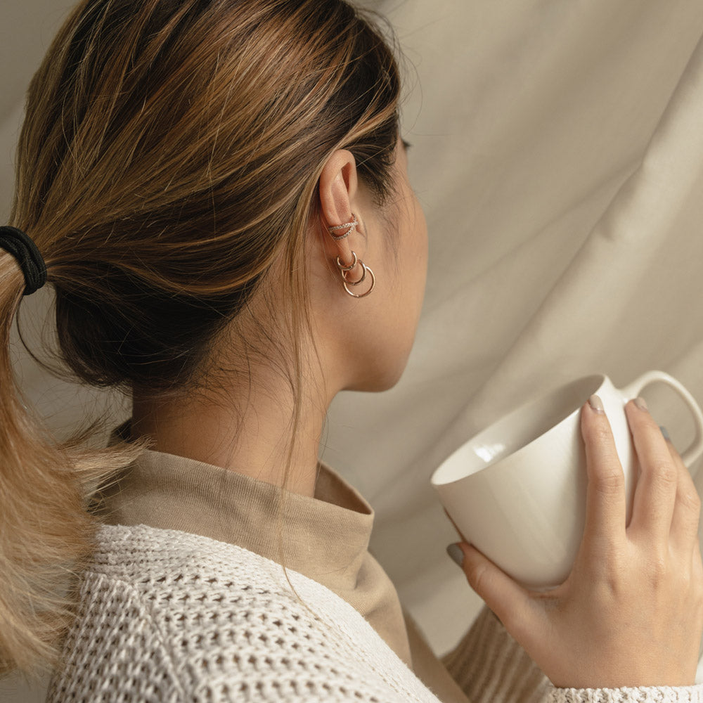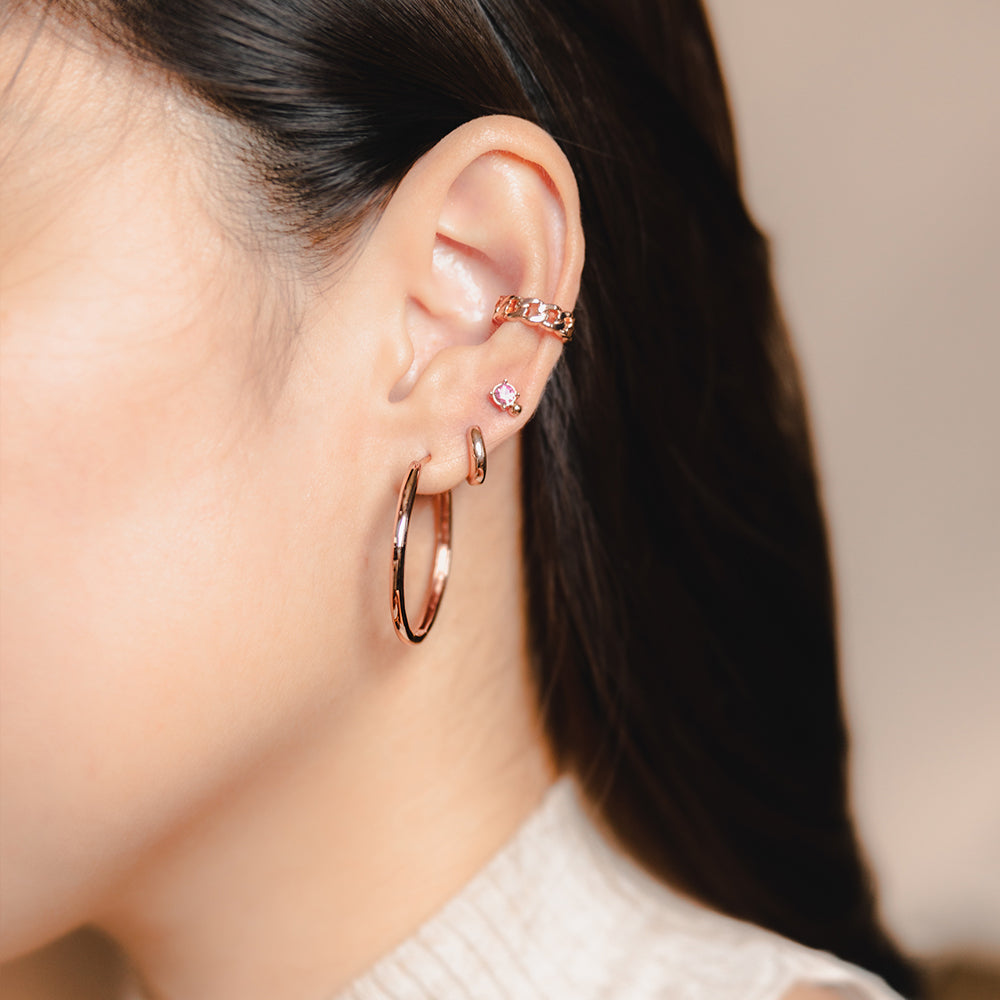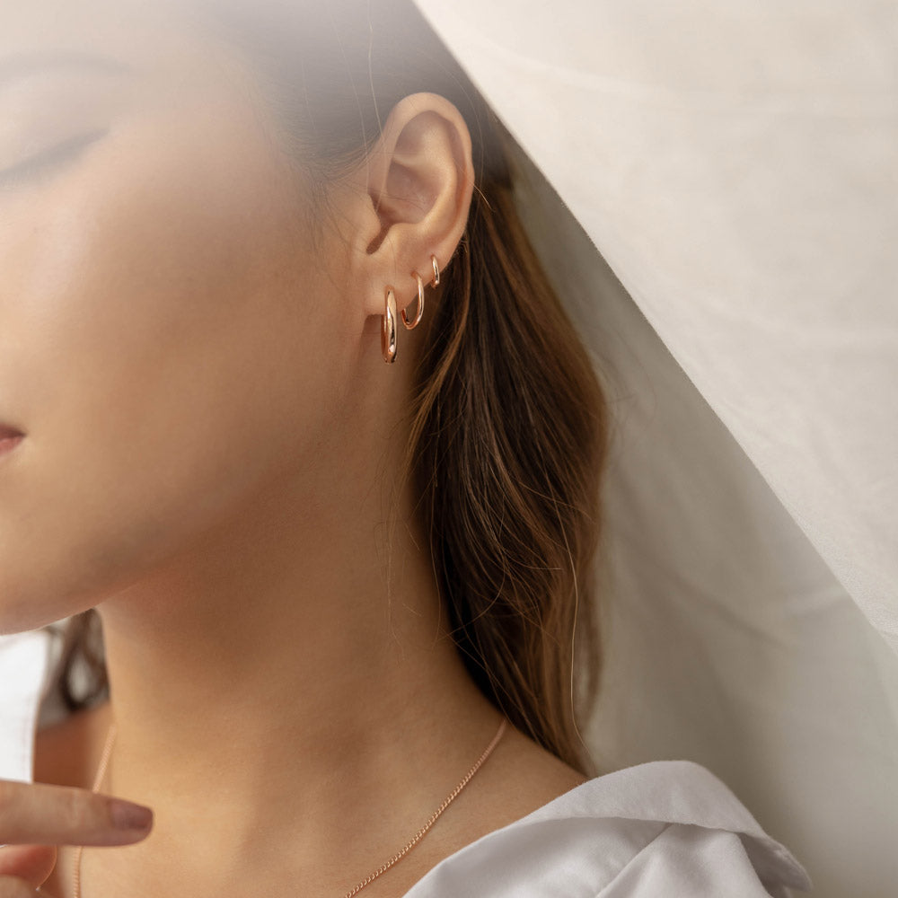 Please note: Earrings seen on models may appear larger or smaller when in comparison to each individual's earlobes. Please refer to the sizing chart and measurements for accurate sizes of the earrings.