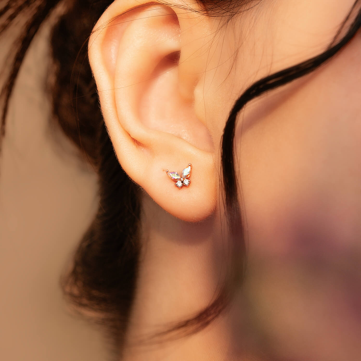 Materials: 18k rose gold-plated eco-brass, e-coating, cubic zirconia stones