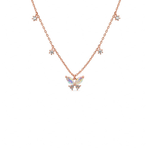 Be awed by this double chain number and its colour-shifting aurora borealis cubic zirconia butterfly charm and sparkling details. Make it a set with its necklace counterpart.