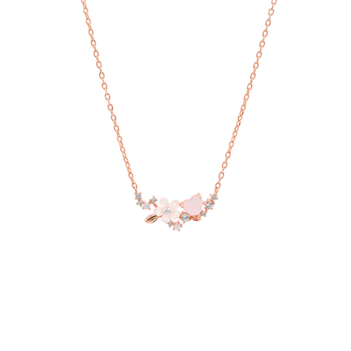 Materials: 18k rose gold-plated eco-brass, e-coating, mother of pearl, cubic zirconia stones