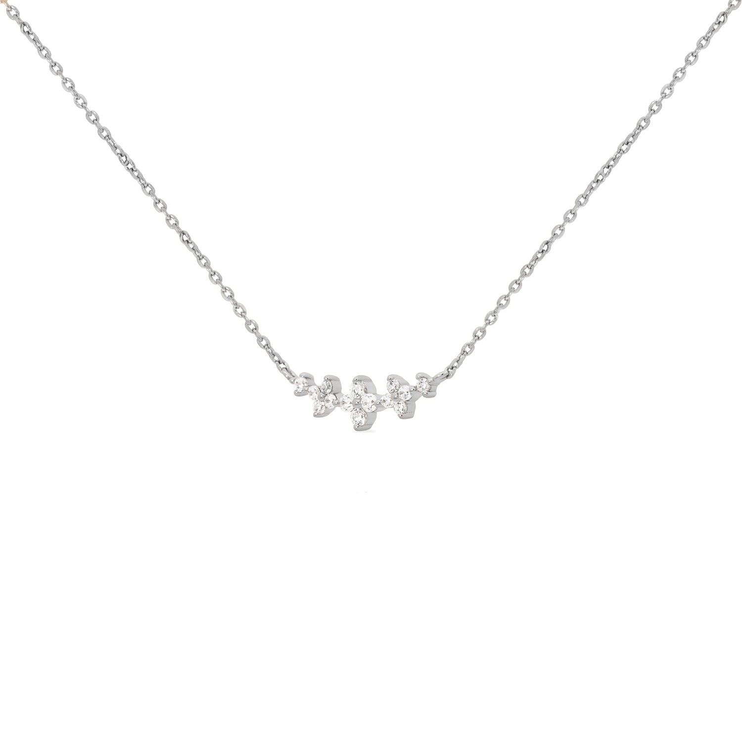 Leona is a strikingly sparkly piece that is bound to dazzle. Its cubic zirconia pendant features an exquisite arrangement of 5 stars. Pair this necklace with its matching ear studs for a complete look.