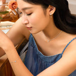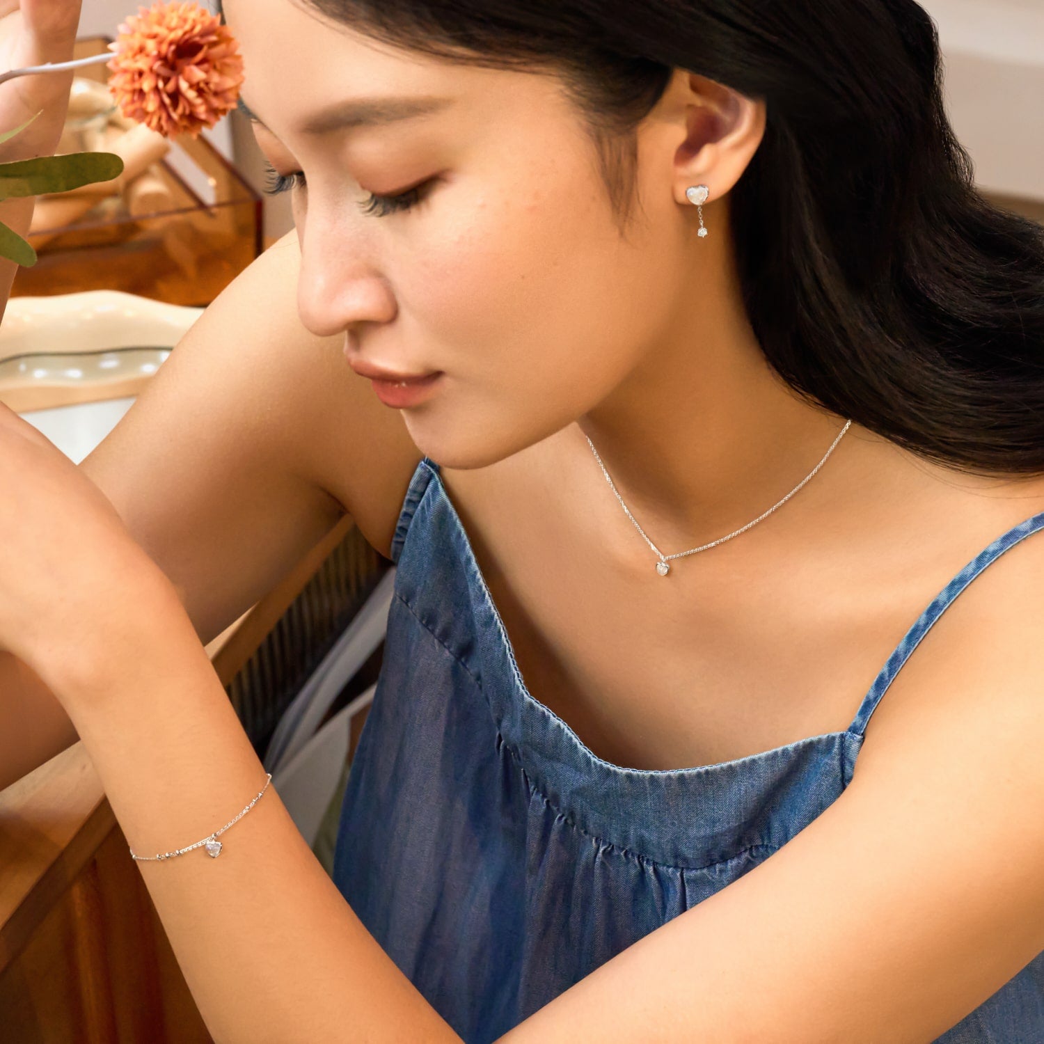 A moonstone heart combined with sparkly dangly charms? Say no more. Darcy oozes sweet charm and elegance all at once. Get ready for some compliments!