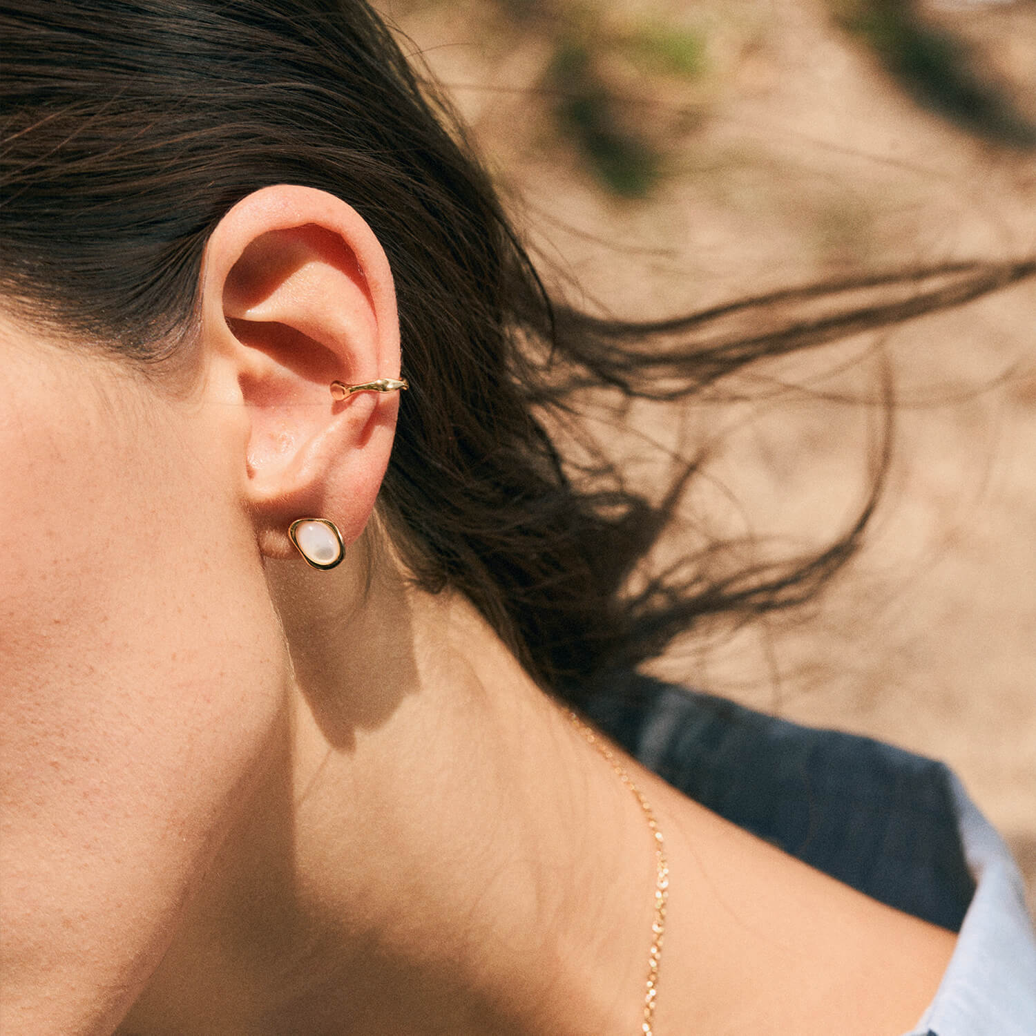 This contemporary take on the classic pearl studs features a freeform bezel and a mother of pearl finish. The pearlescent shimmer on Maia is sure to add a touch of refinement to any ensemble.