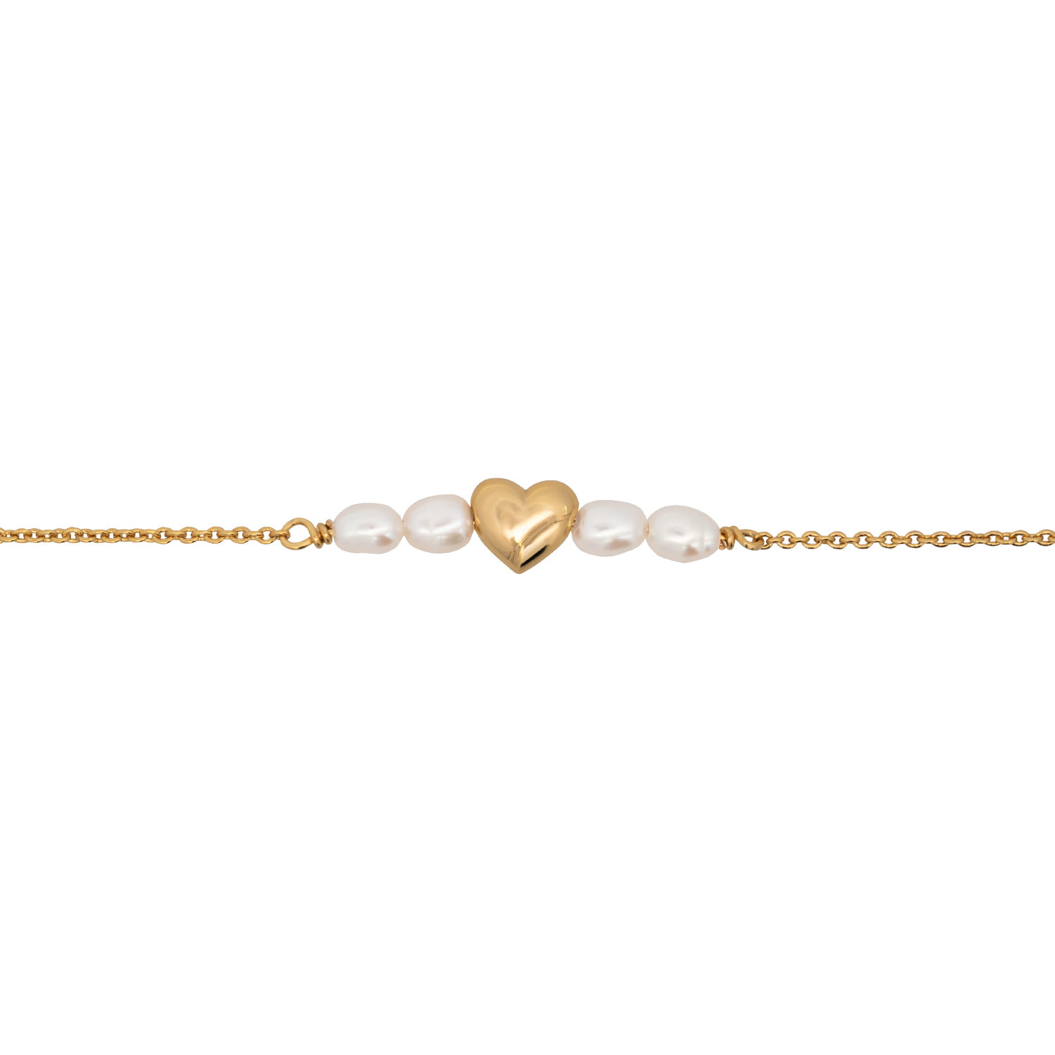 Fun and elegance rolled into one style. Cradled between a pair of pearls is a dainty heart-shaped pendant. Arden is a darling piece you're bound to love. Style this with its studs and necklace counterparts.