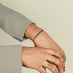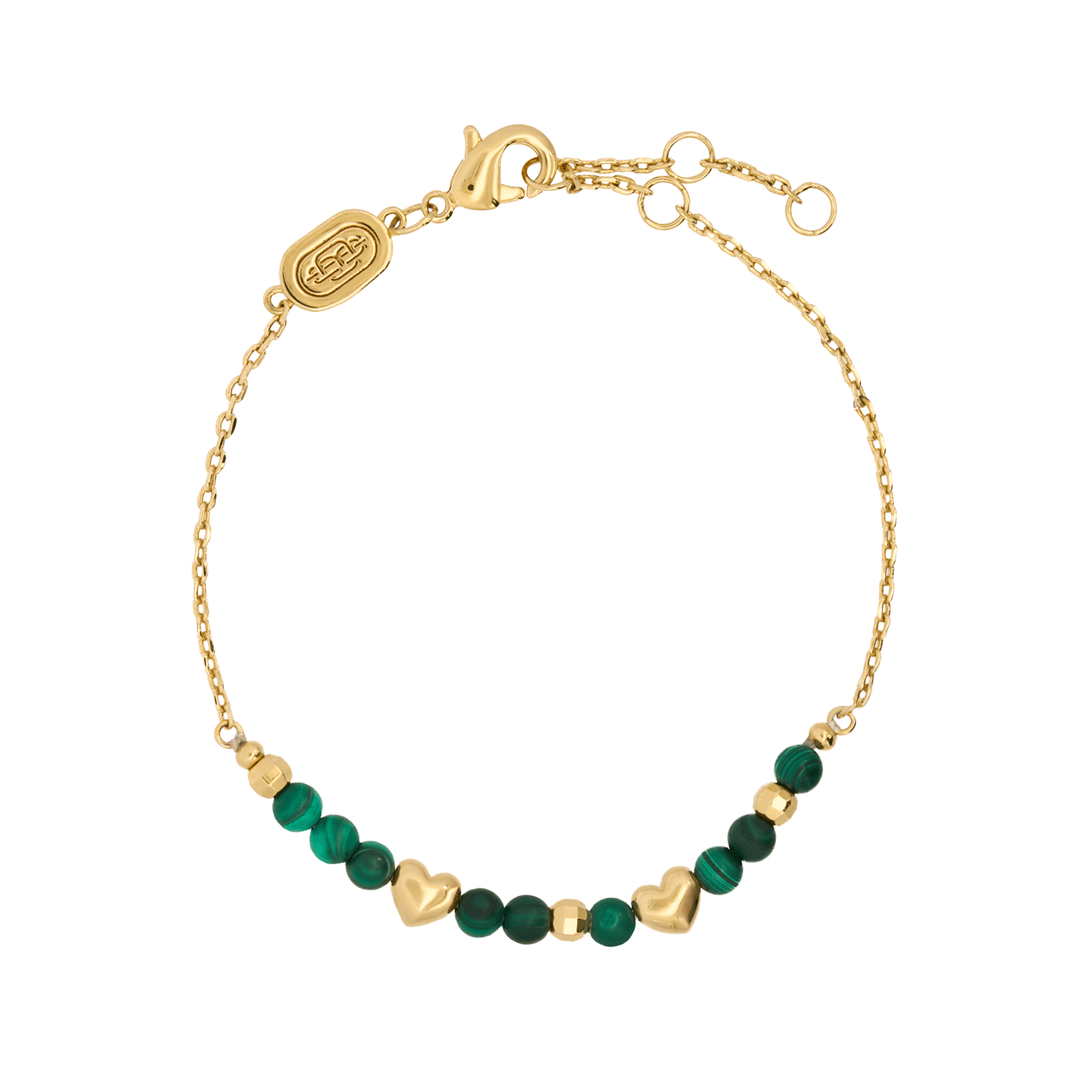 Taking cue from secrets shared between friends, the word "BFF" is written in Morse code in the beaded design of the Gold Malachite Secret Code Bracelet. Each Secret Code Bracelet includes an International Morse code card so you may decode your bracelet!