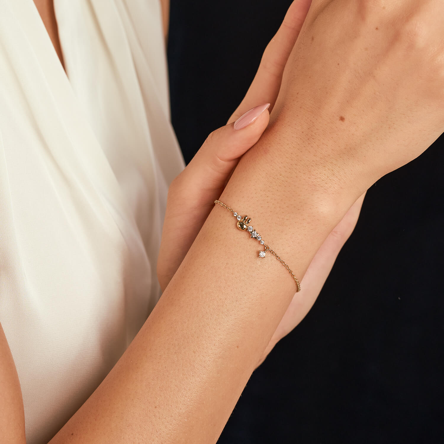 Inspired by glowing shooting stars that light up the night sky, the miffy Stardust Bracelet features a sparkling arrangement of stars. A twinkling dangle charm of cubic zirconia adds an extra touch of shine. Make it a spellbinding set with its matching earrings and necklace.