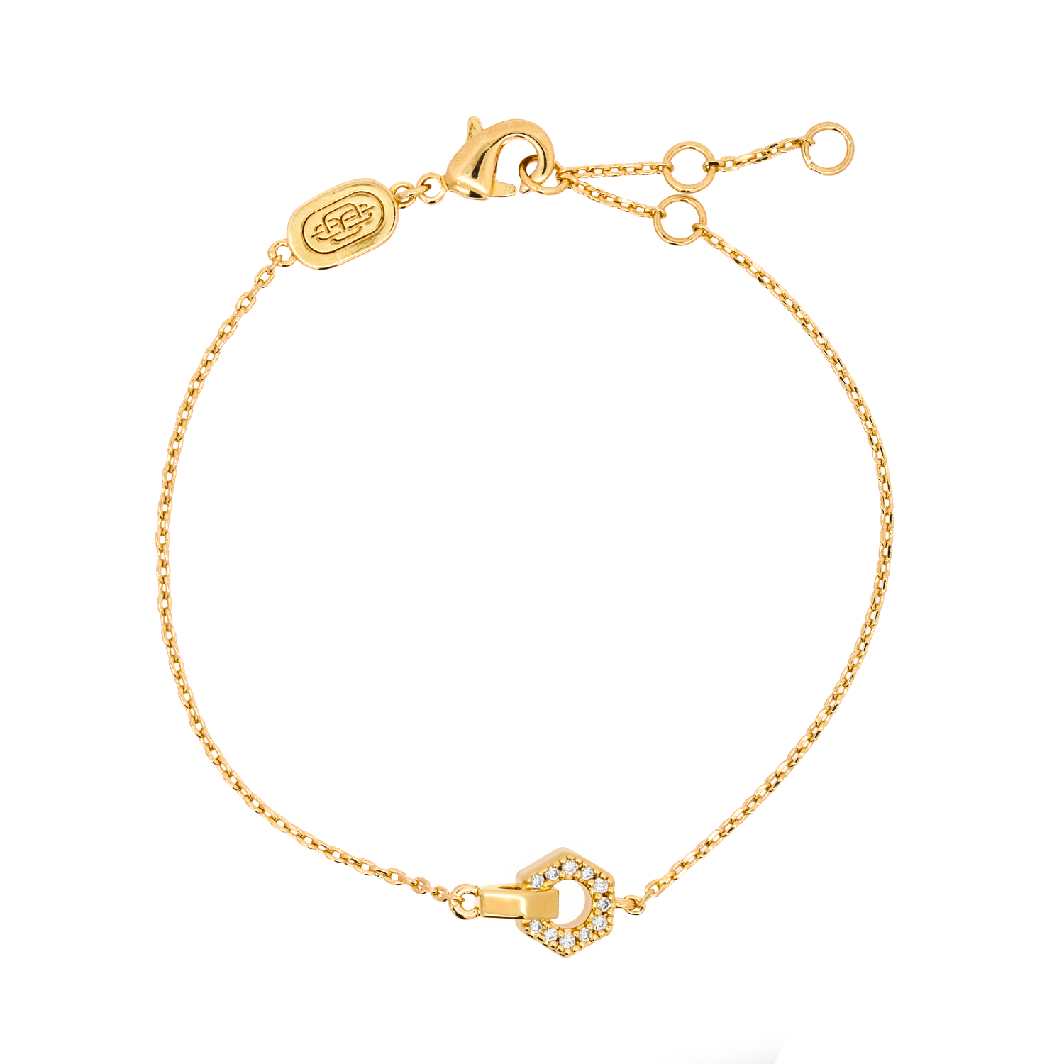 Taking after the shape of a hex bolt, Sia's structured form gives off a touch of tough. The addition of cubic zirconia softens the overall aesthetic. Wear it with its necklace and earring counterparts.