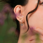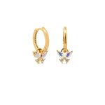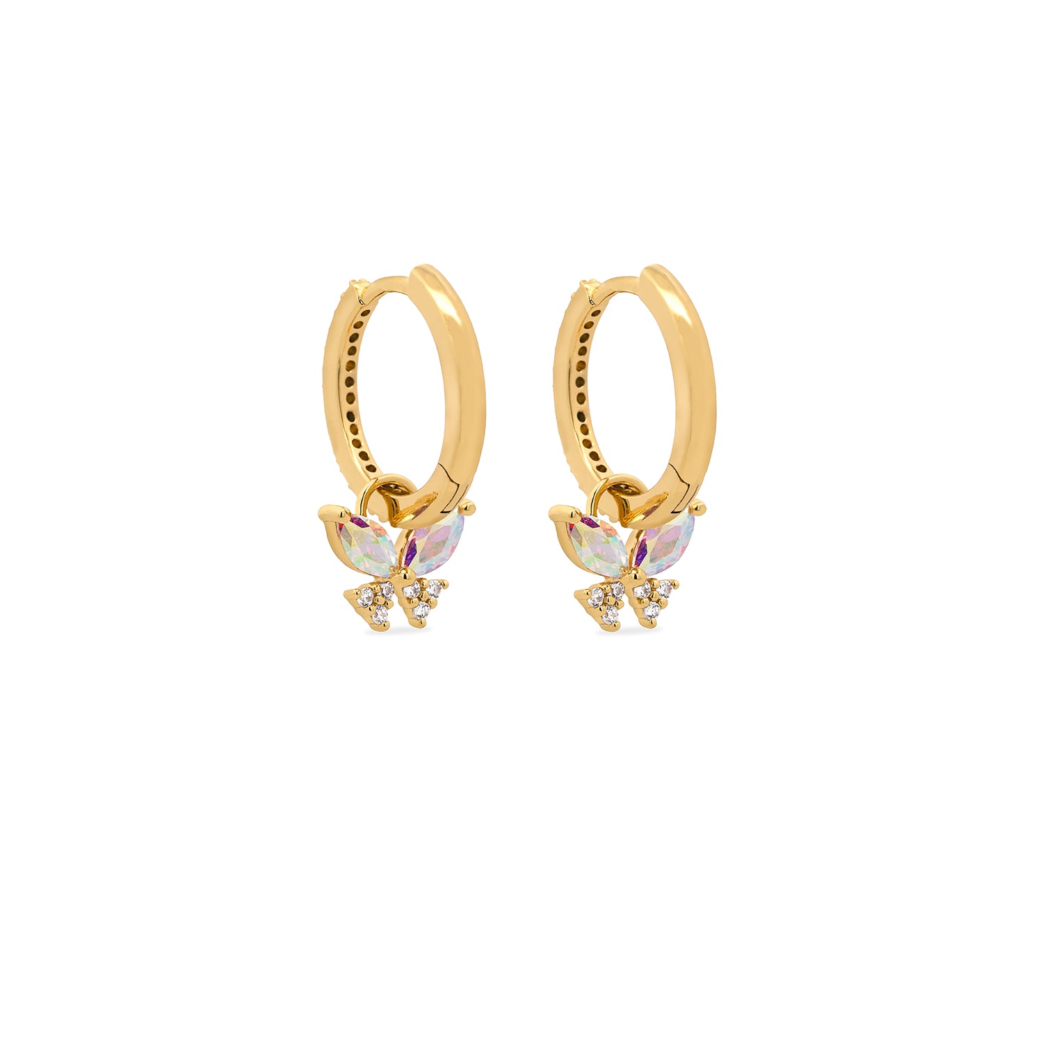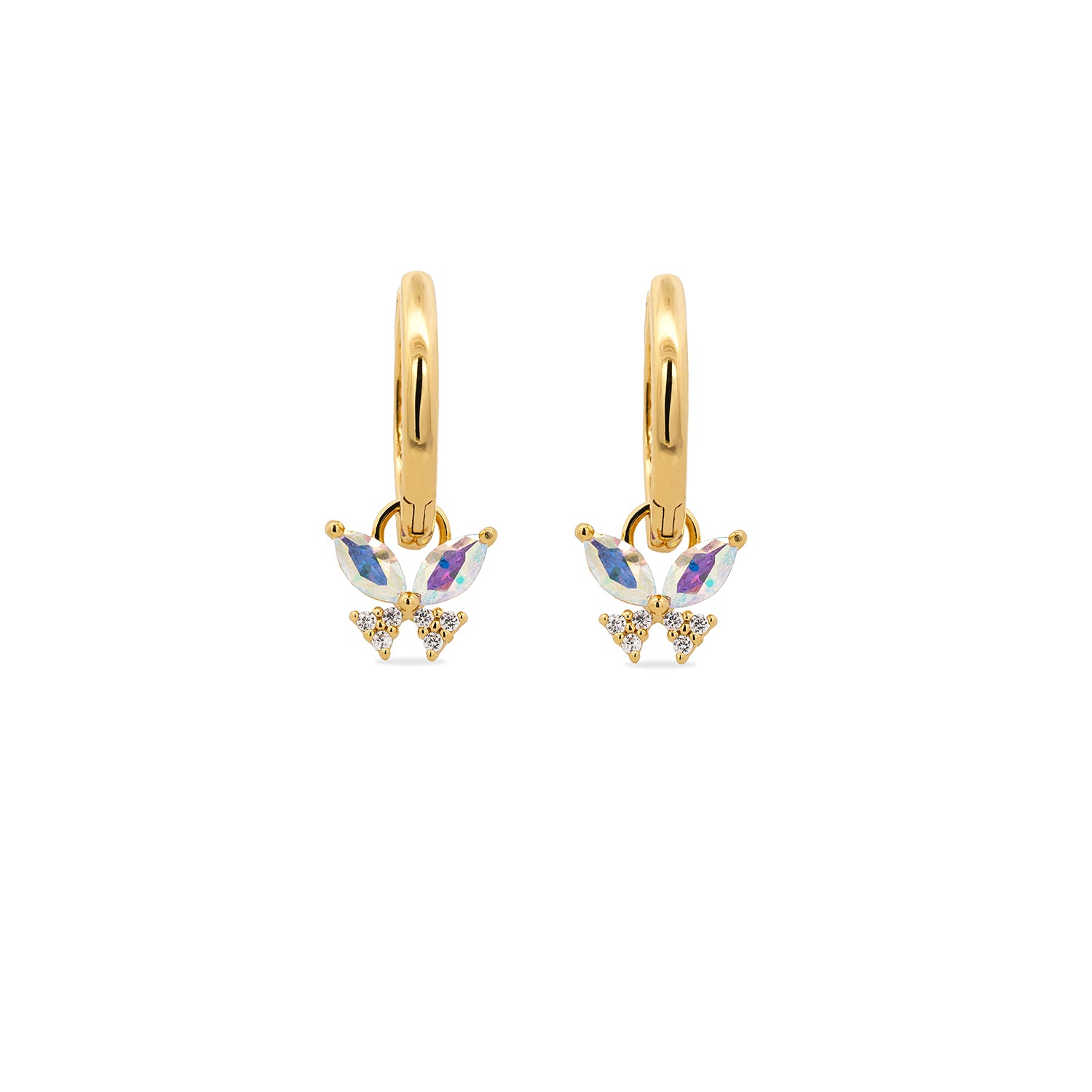 Skipper is a whimsical take on our best-selling reversible huggies. The butterfly drop charms feature colour-shifting aurora borealis cubic zirconia. Wear it multiple ways - with or without the butterfly drop charm, with sparkles or on its unembellished side.