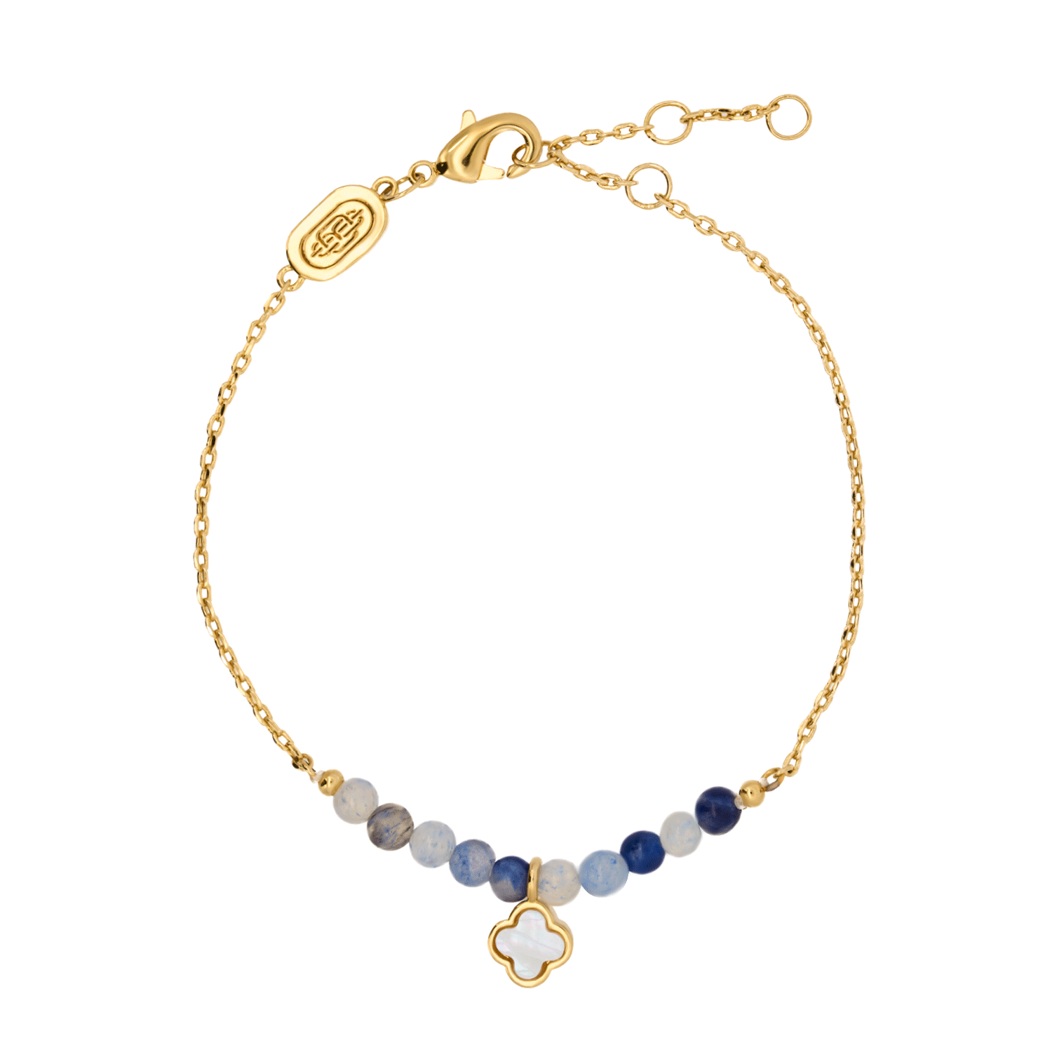 Materials: 18k gold-plated eco-brass, mother of pearl, blue aventurine