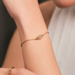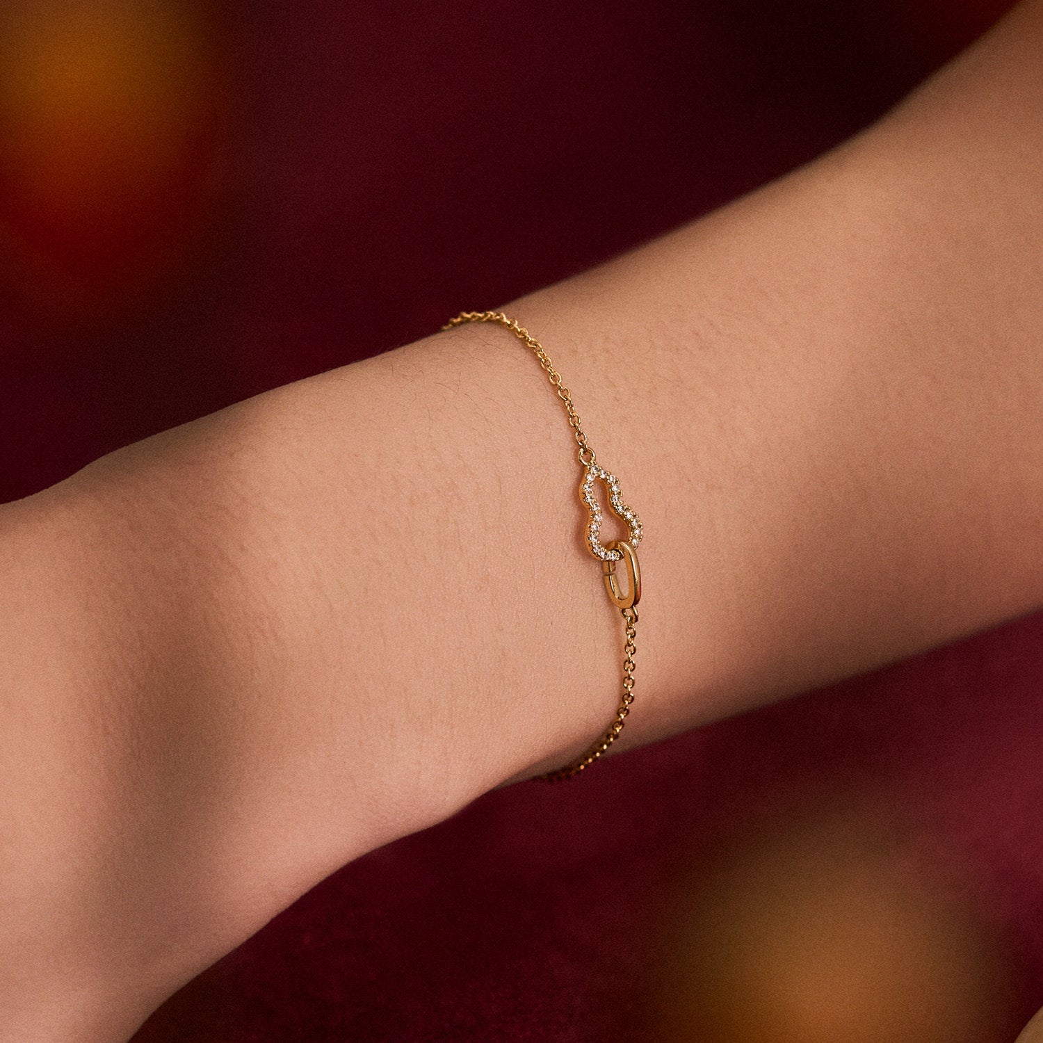 The Hulu Bracelet features a cubic zirconia-encrusted bottle gourd motif interlocked with an oval pendant to represent infinite abundance. Match it with its complementary studs and necklace.