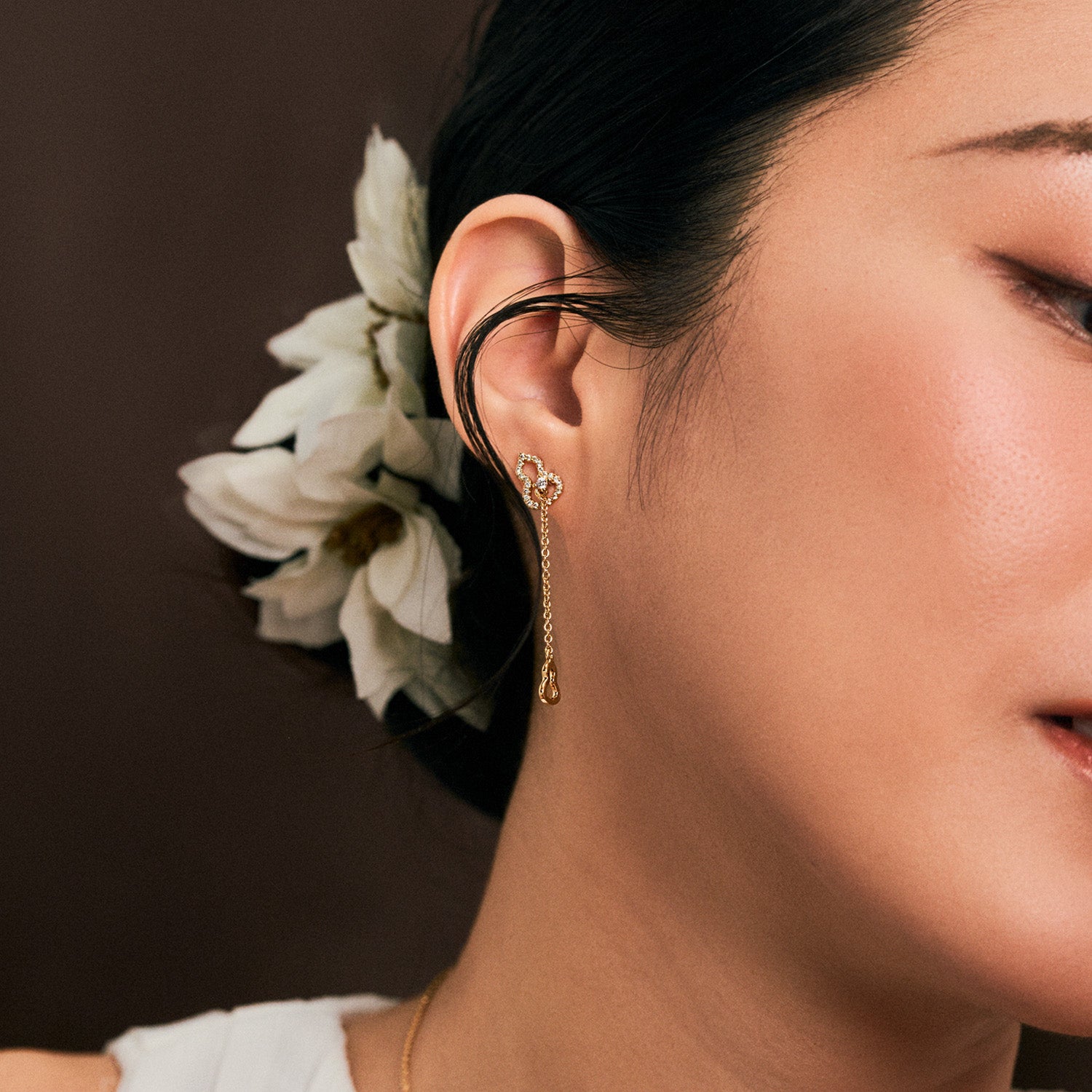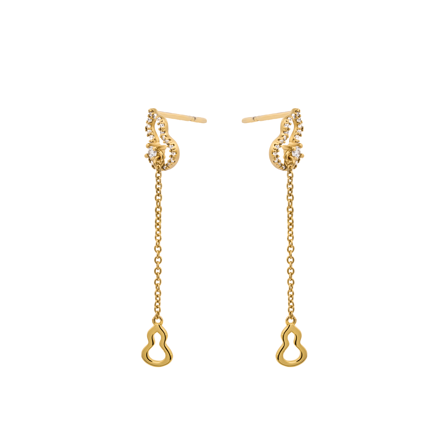 Inspired by the concept of longevity, the long chain and dangle charm on these earrings feature silhouettes of the bottle gourd, also known as the hulu. A dainty design that sways and shines.