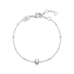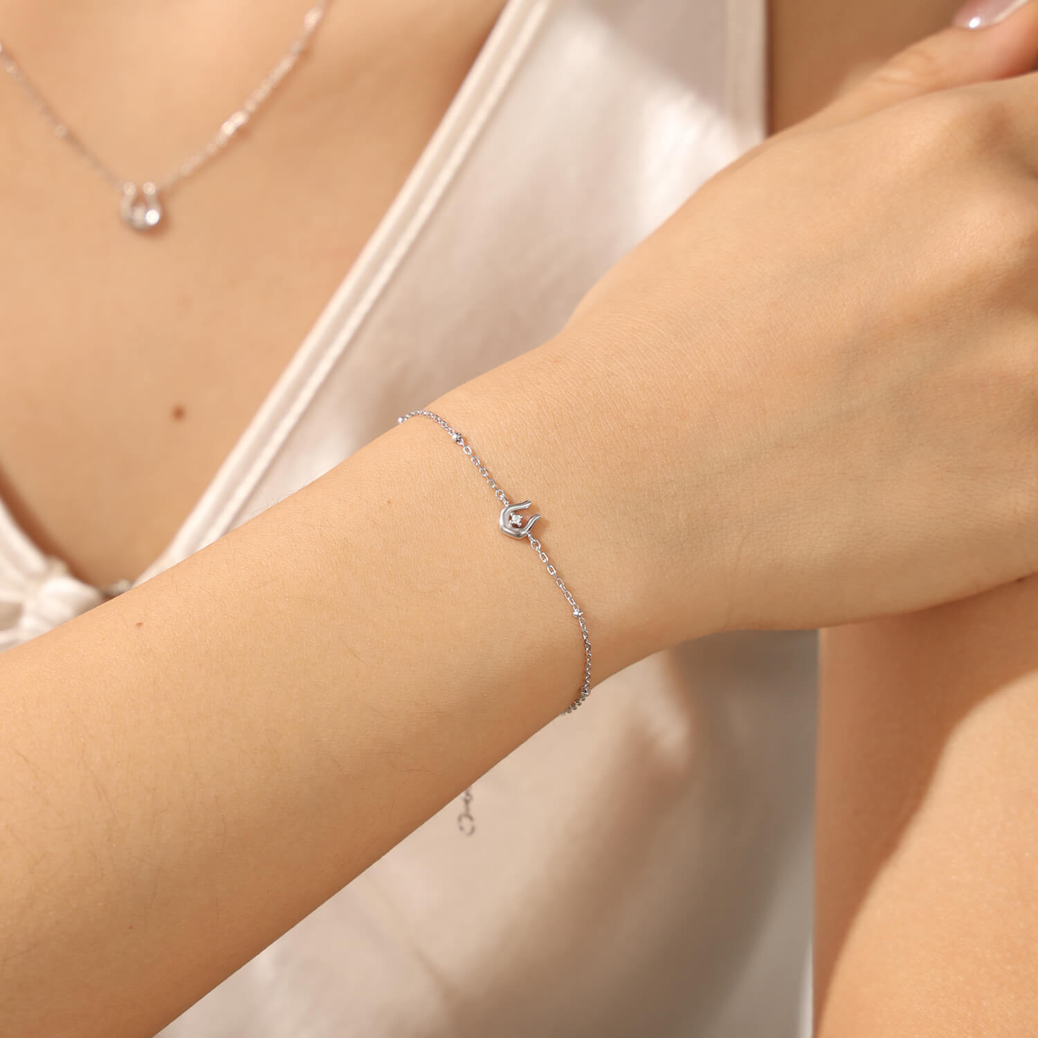 Taking after the shape of an upturned horseshoe, the Caspian Bracelet represents good luck. A single cubic zirconia stone lends a soft, gentle glow to this everyday piece. Complete the look with other Caspian counterparts.