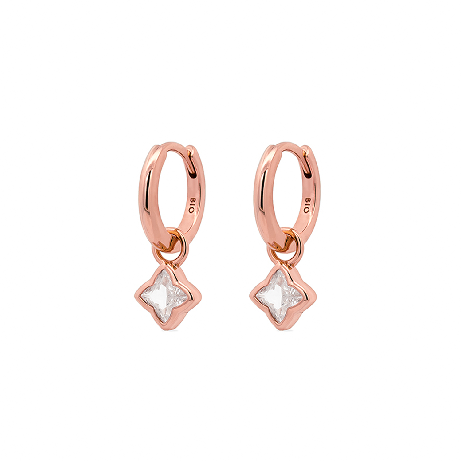 Materials: 18k rose gold-plated eco-brass, e-coating, cubic zirconia stones