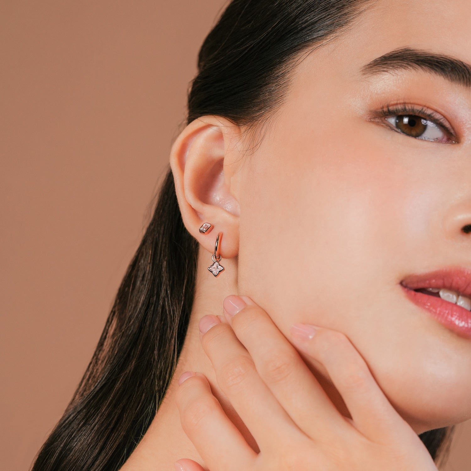Be charmed by the diamond-shaped cubic zirconia silhouette on the Chiara Huggies. Embellish your everyday with effortless sophistication.