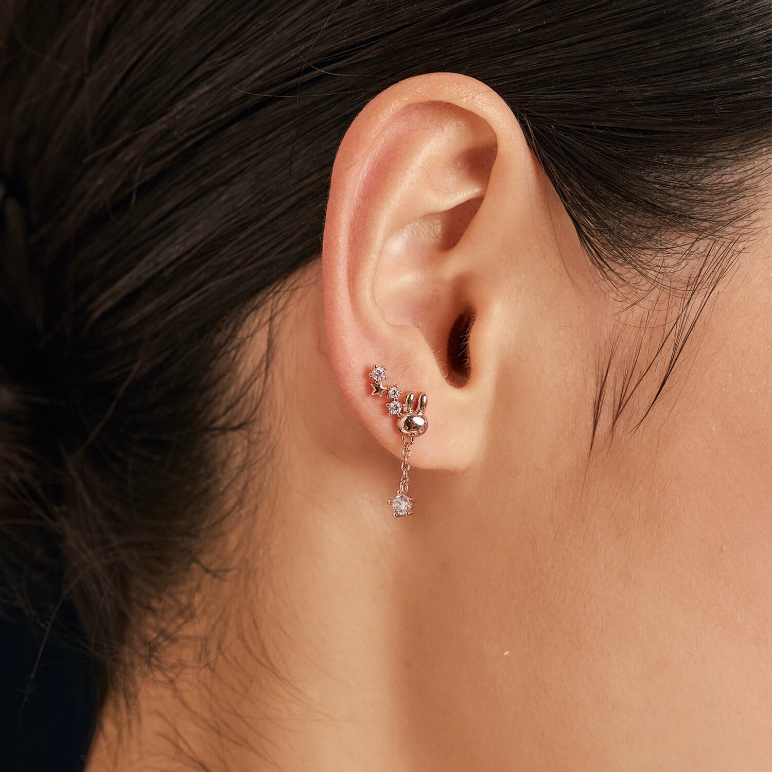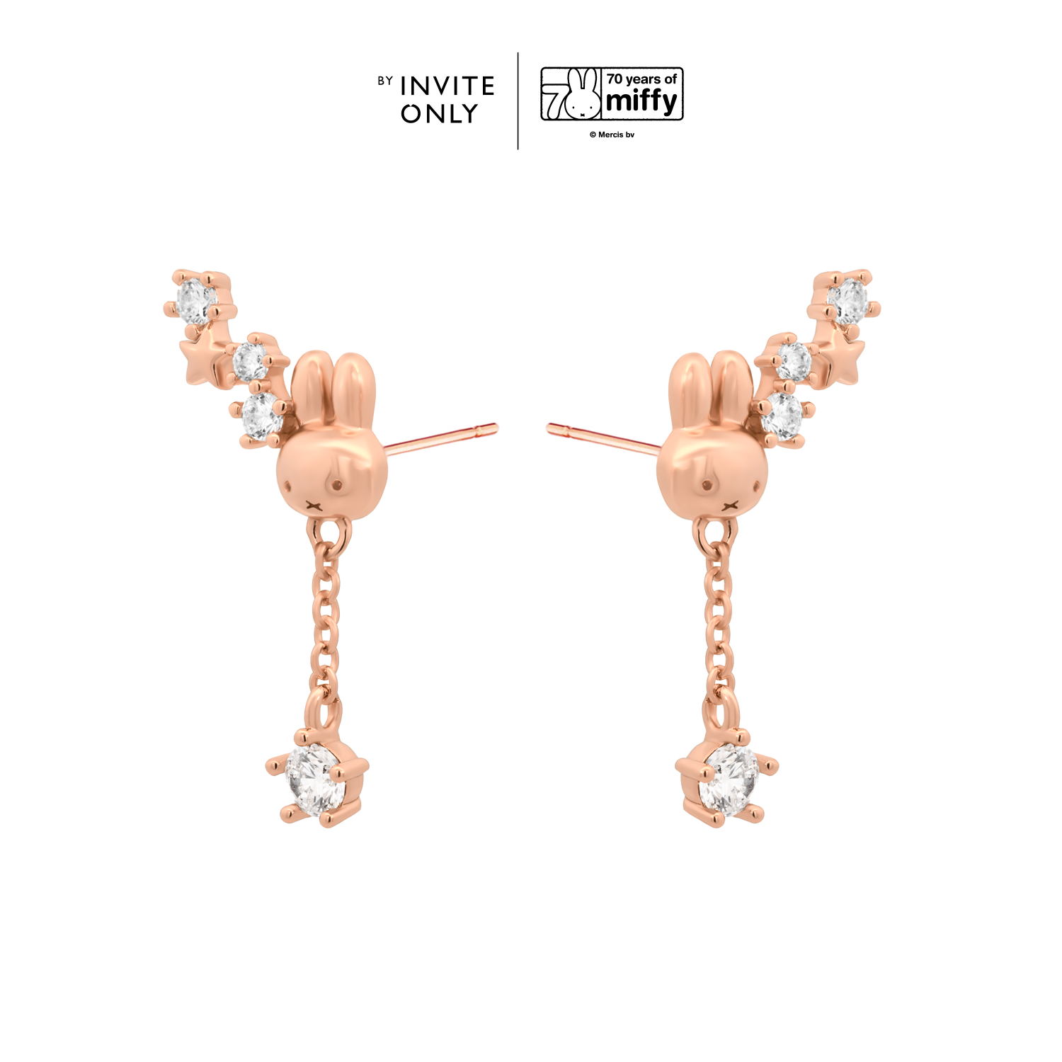 Much like shooting stars, a twinkling arrangement of sparkles trail behind the miffy design on these drop and dangle earrings. Designed sway as you move, the star-shaped drop-charm adds extra shine. Make it a spellbinding set with its matching necklace and bracelet.