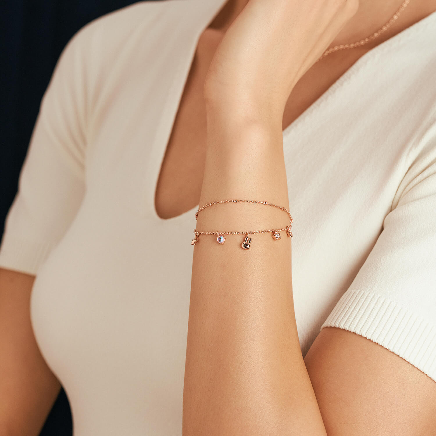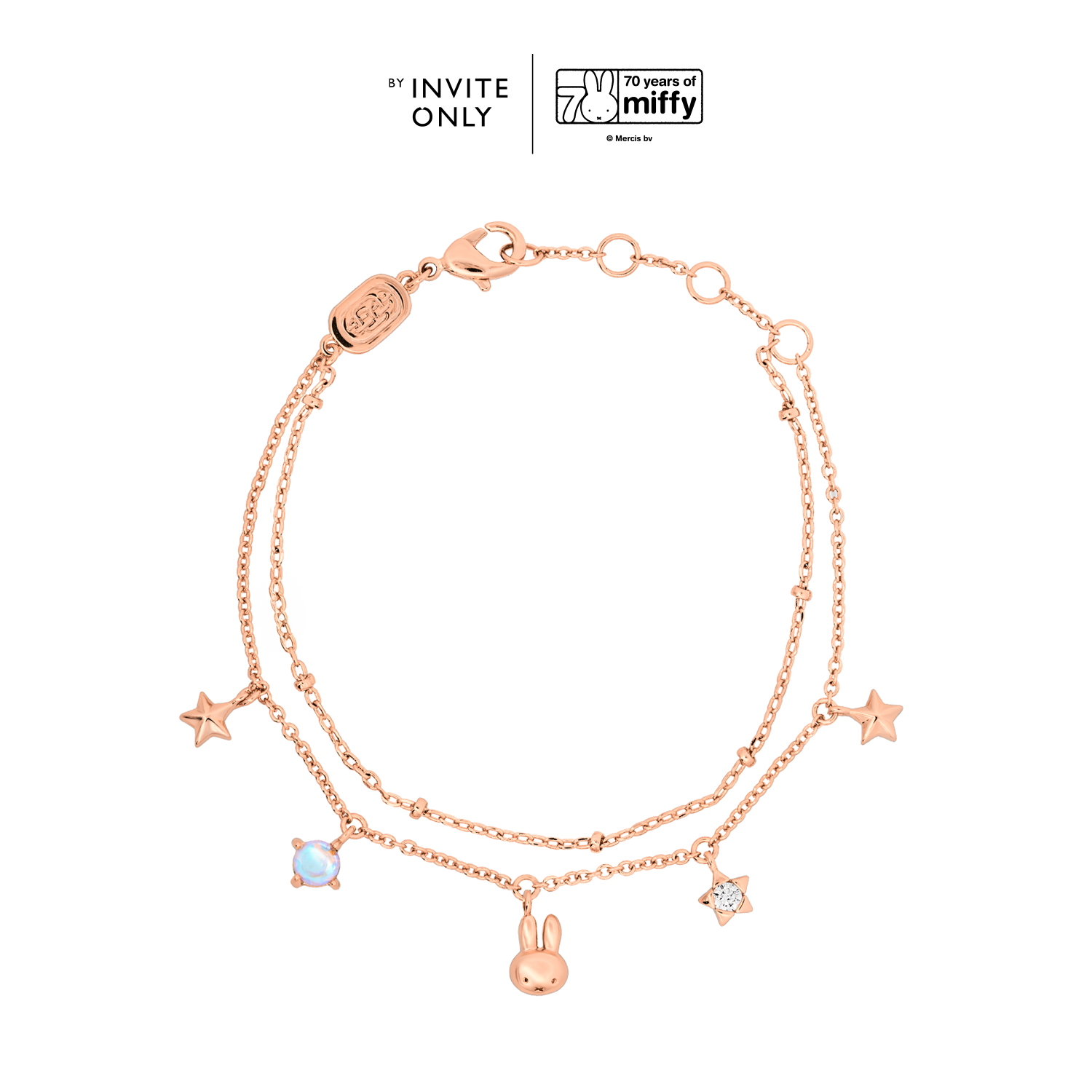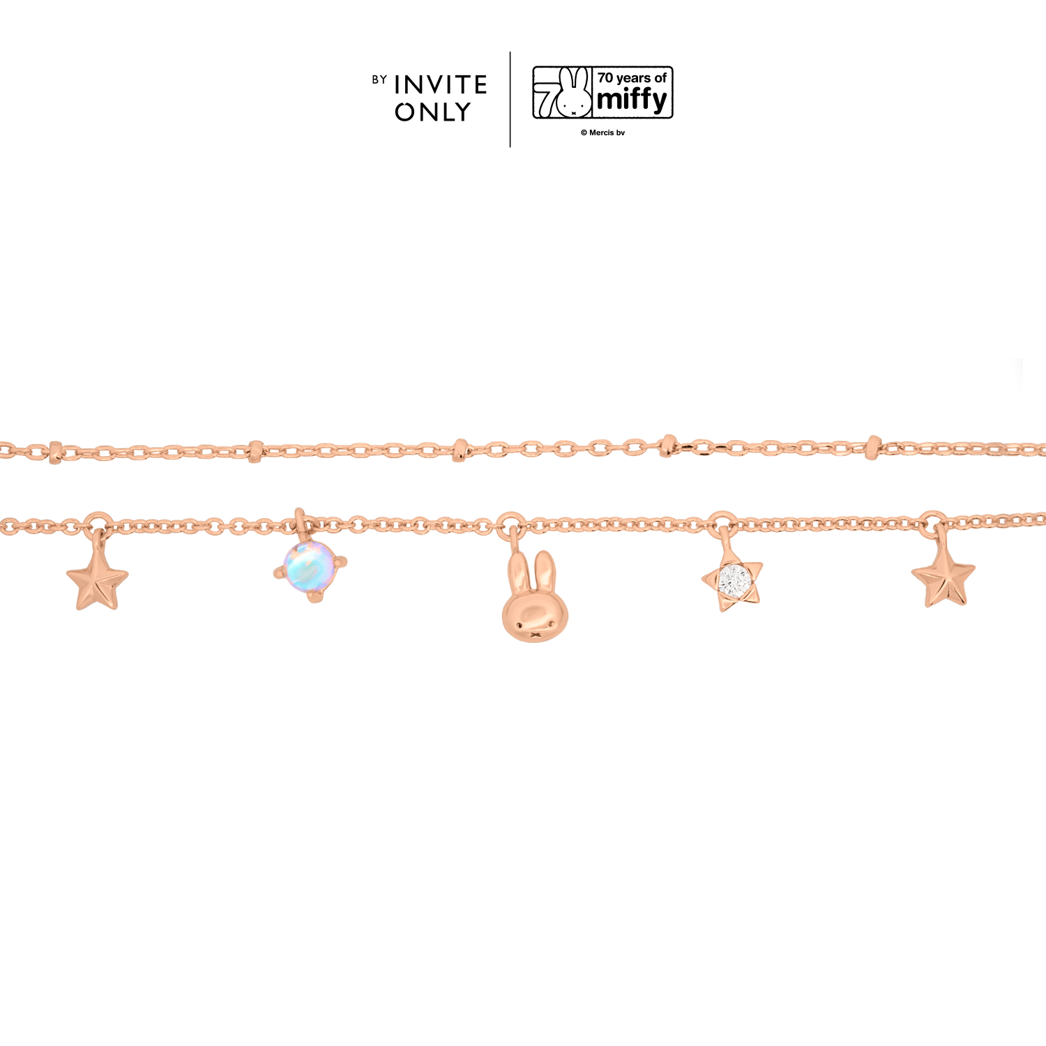 Adorned with a main miffy pendant, a series of star-shaped charms, and iridescent synthetic moonstone the miffy Starlight Bracelet is as dainty as it is dreamy. Match it with its complementary necklace counterpart.