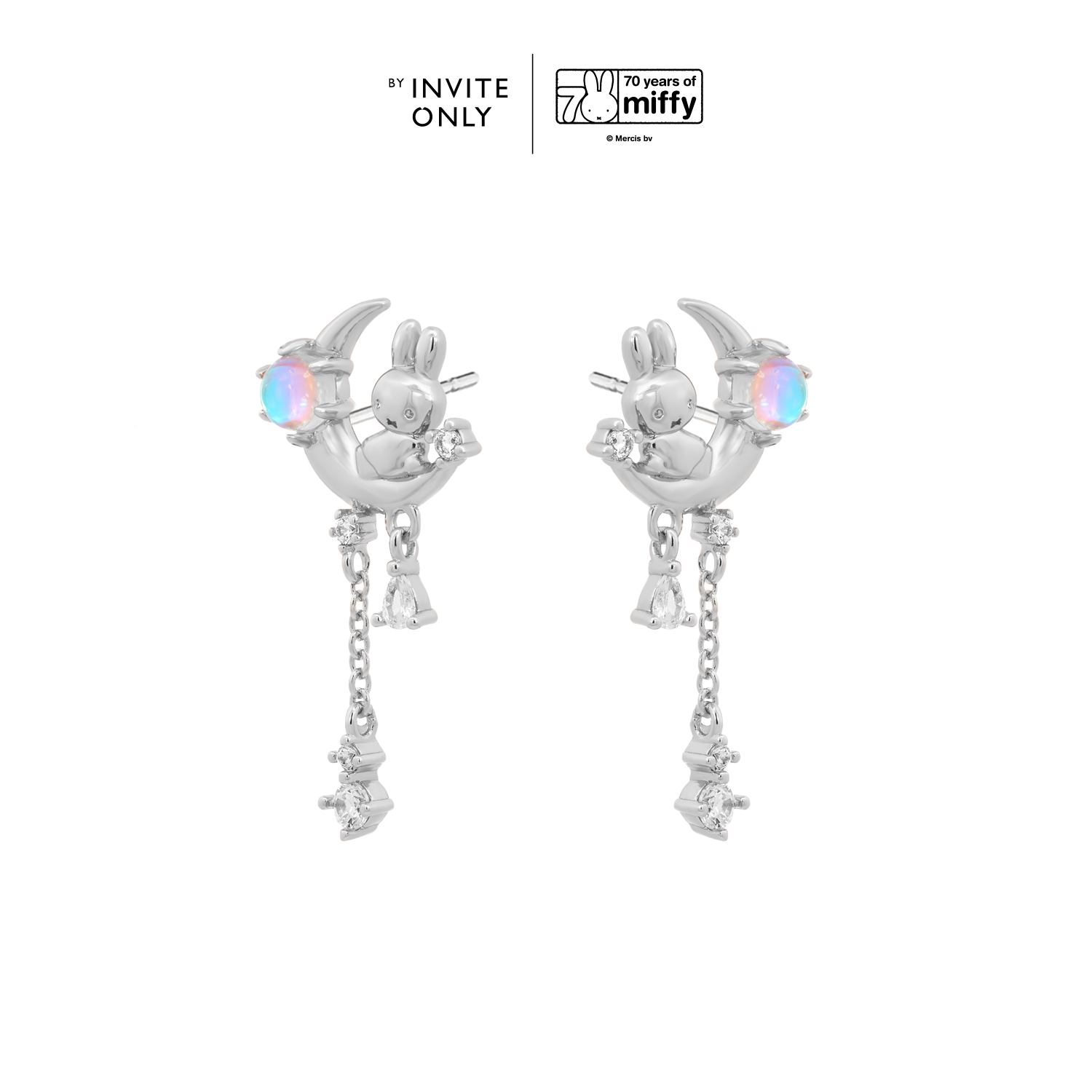The ornate details on these statement earrings will leave you in awe. Embellished with synthetic moonstone and dangling drop charms, the miffy Sweet Dream Earrings are a miffy fan's dream come true.