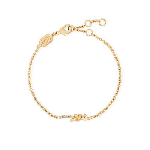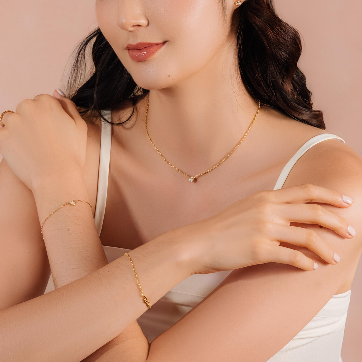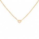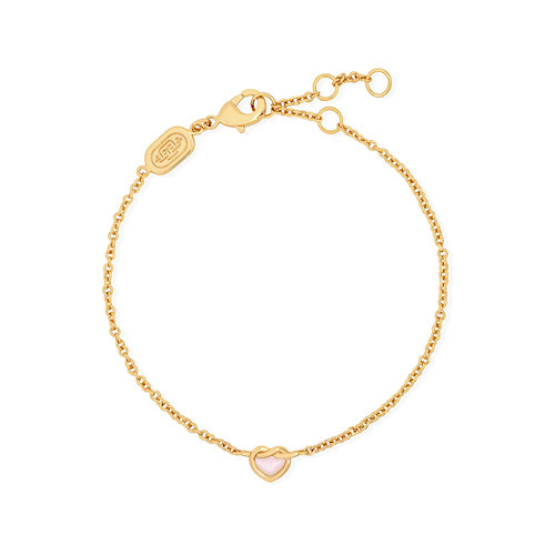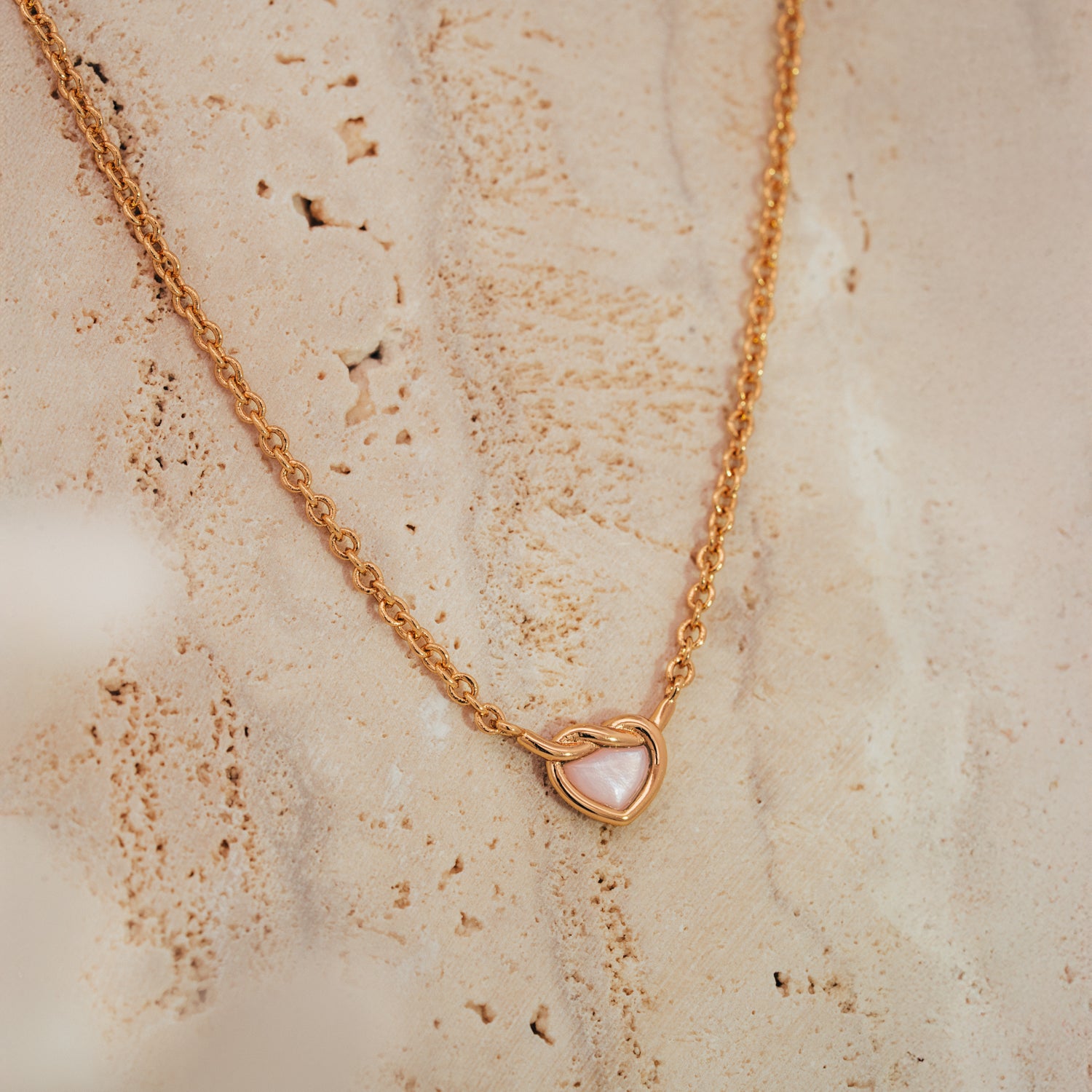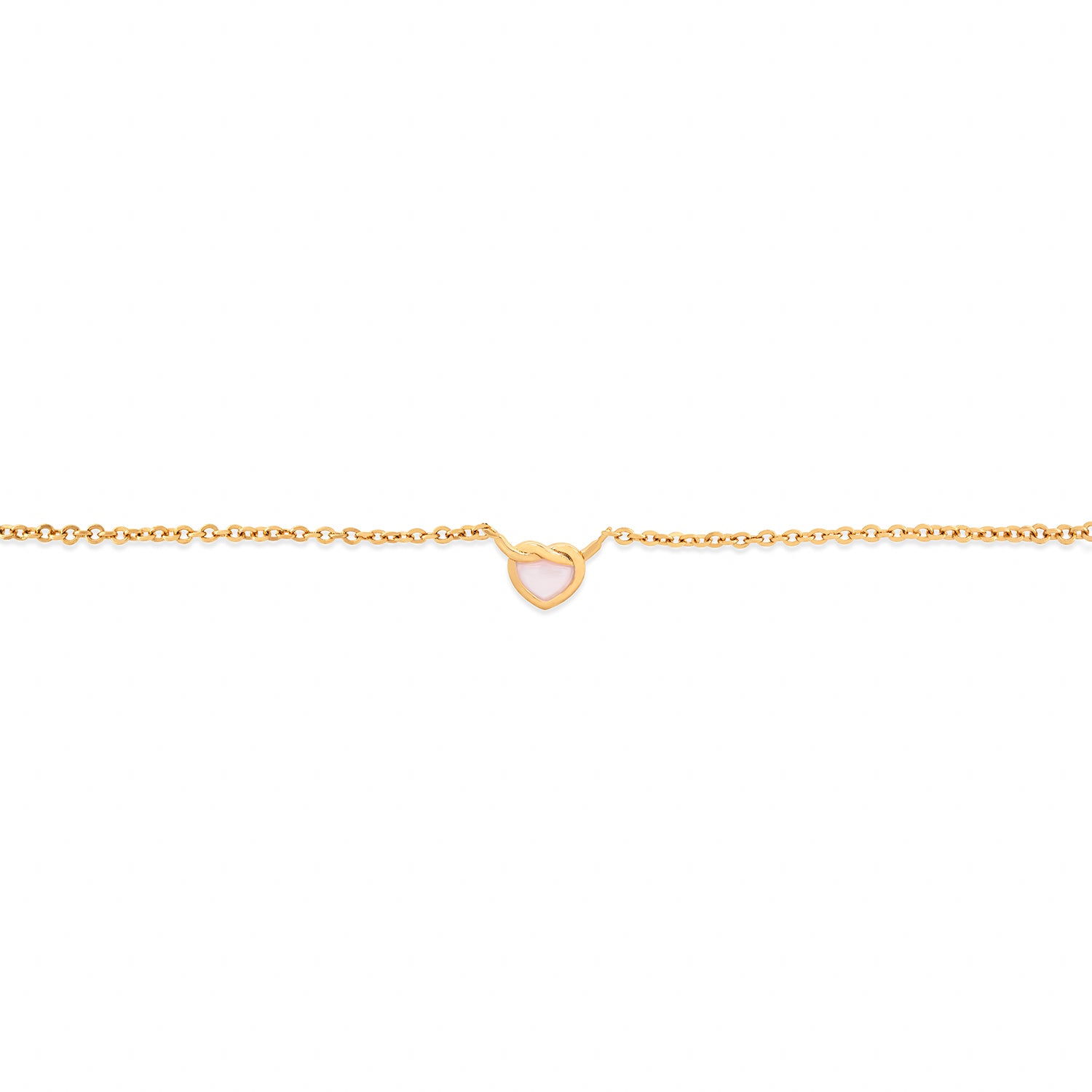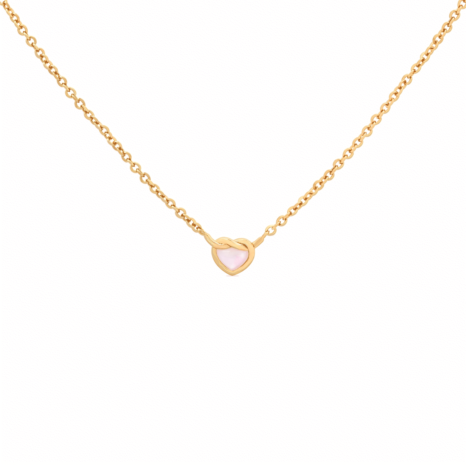 We've put a dainty spin on the classic heart knot! This opalescent number features a shimmering pink mother of pearl pendant.