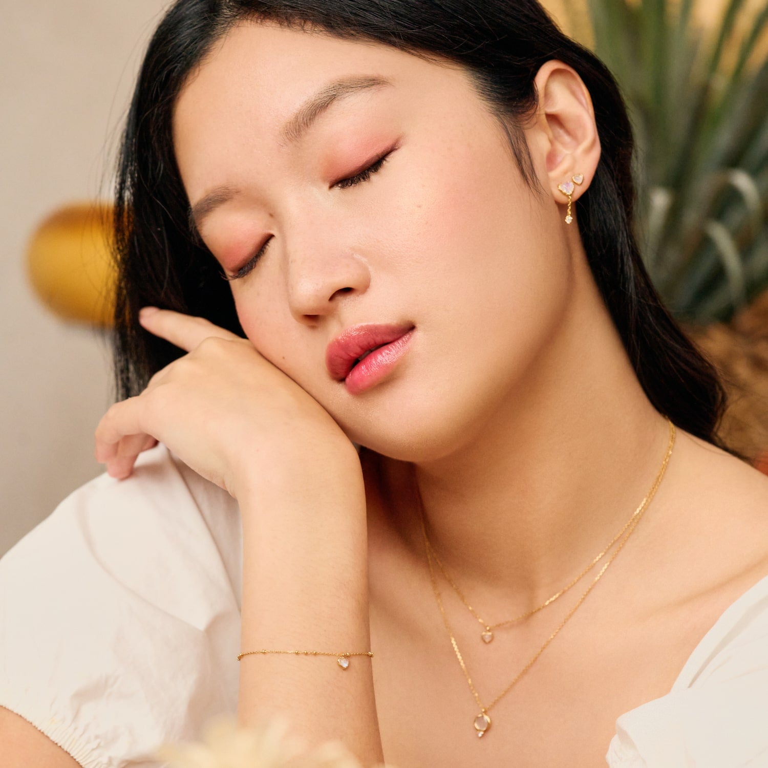 The beloved Darlene is now back in studs form! These mini moonstone hearts will sweeten up any stack. Time to complete the set with its matching necklace and bracelet.