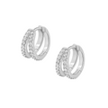 Spice up your look with these double hoop huggies, adorned with cubic zirconia stones in a sleek pavé setting. Experiment with stacking single studs to create your next signature look.