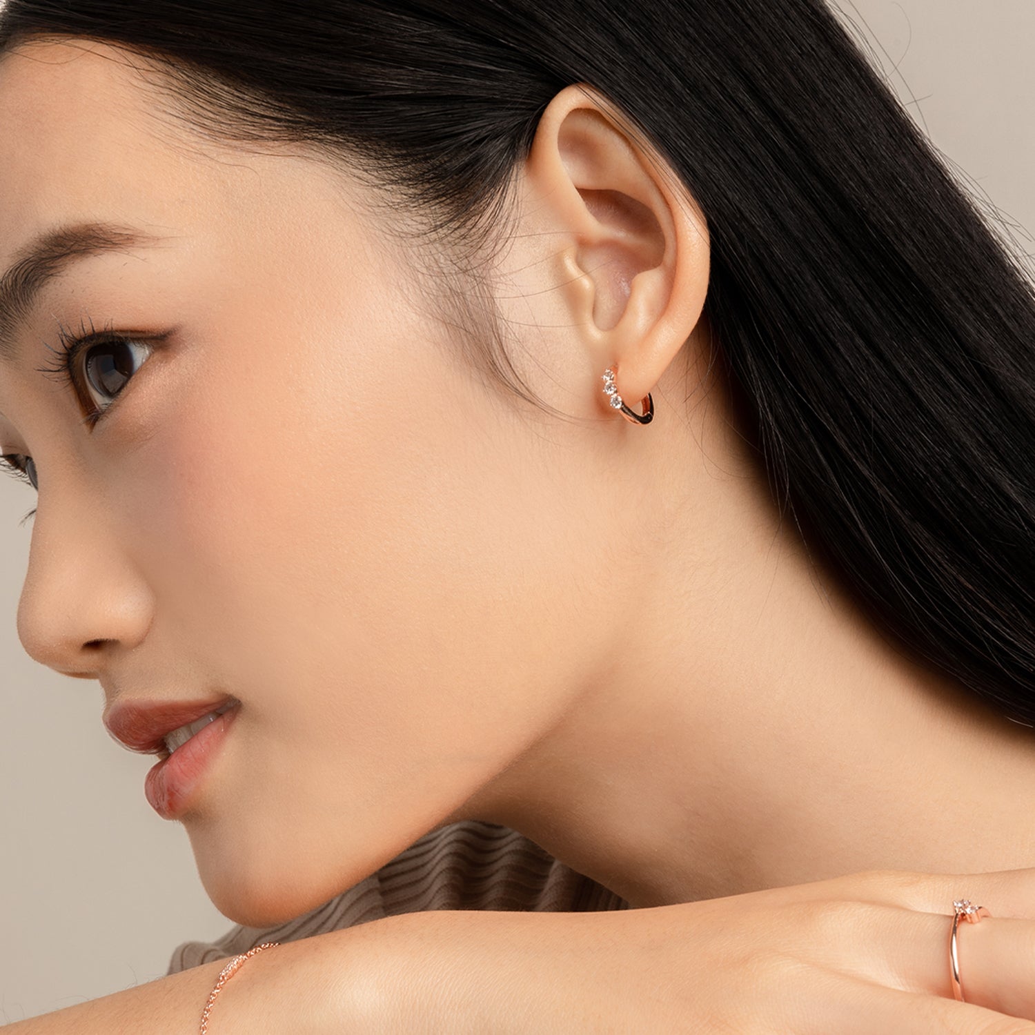 If you love huggies, this pair is a must-have essential! Coupled with a trio of cubic zirconia stones, the Trio Cubic Huggies are perfect for your everyday adventures.