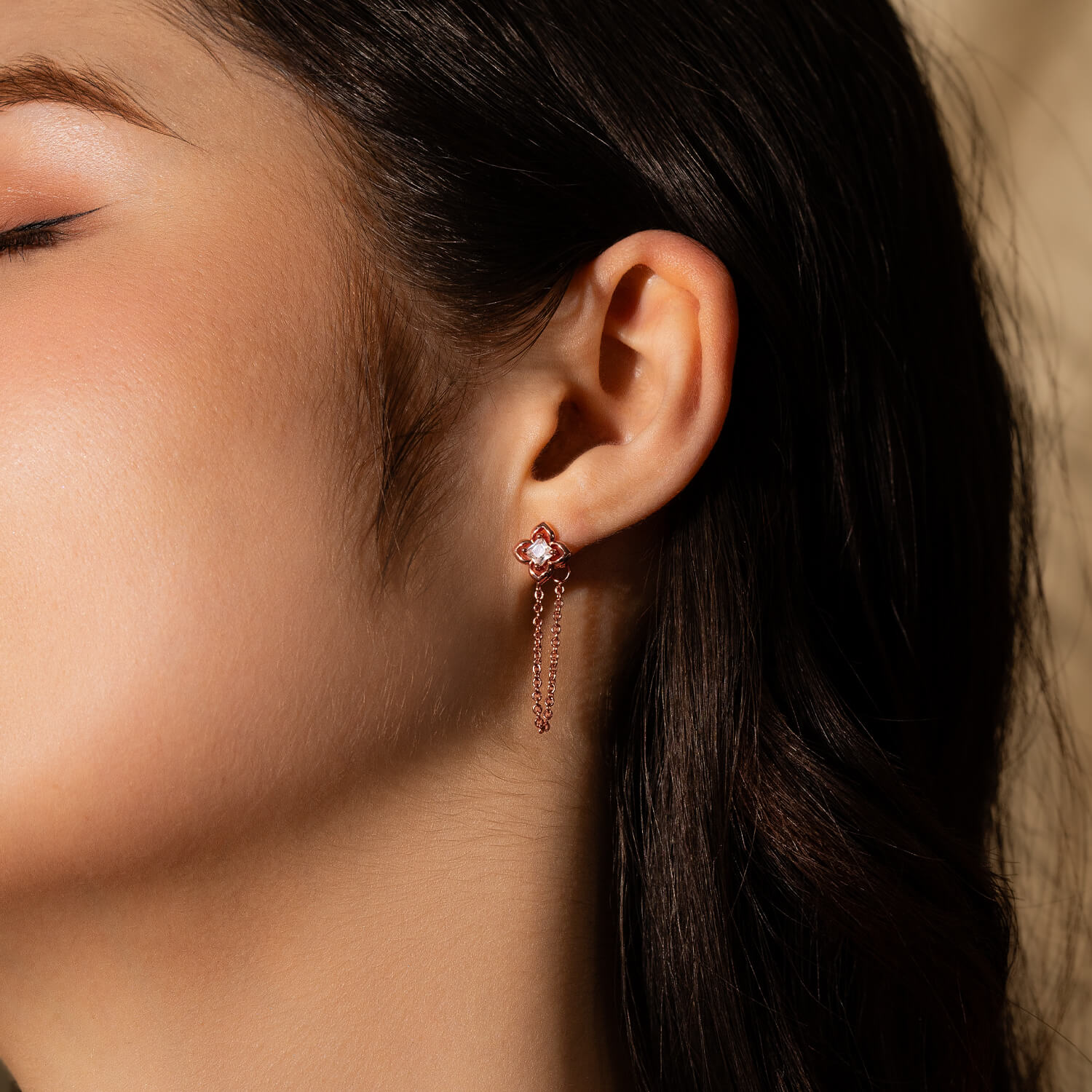 Materials: 18k rose gold-plated eco-brass, e-coating, cubic zirconia stones