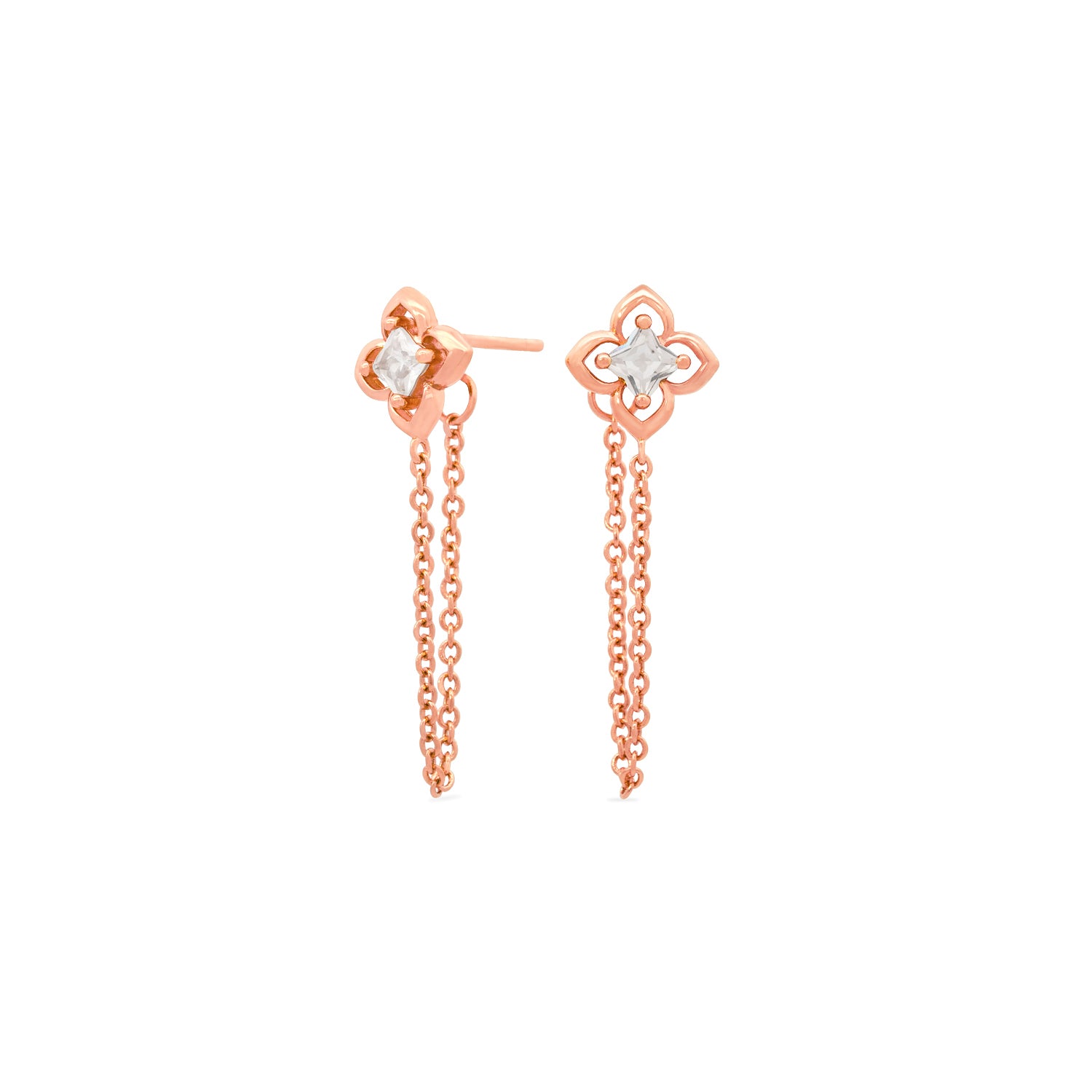 Ilsa is a contemporary take on everyday elegance. Dangle chains add movement to these cubic zirconia studs. Pair it with the Ilsa Bracelet to complete the look.