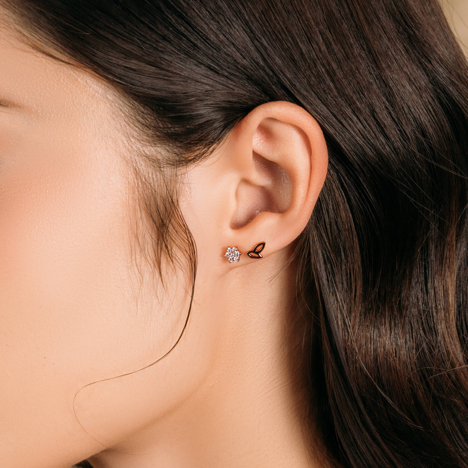The elegant arrangement of cubic zirconia stones on Esther takes after the snowflake motif. This glistening ear stud wears well on the lobe or in a conch piercing.