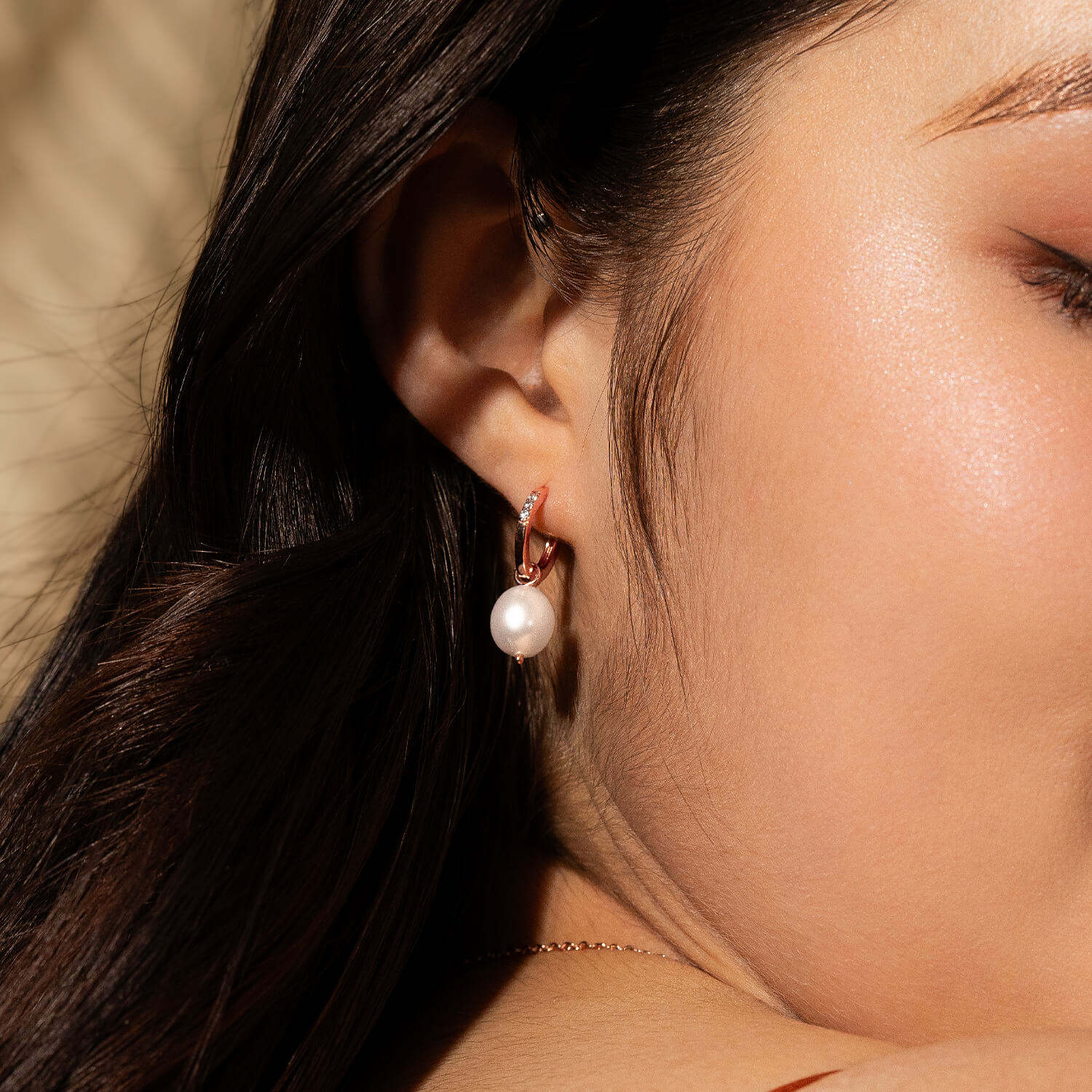 Materials: 18k rose gold-plated eco-brass, e-coating, freshwater pearl, cubic zirconia stones