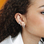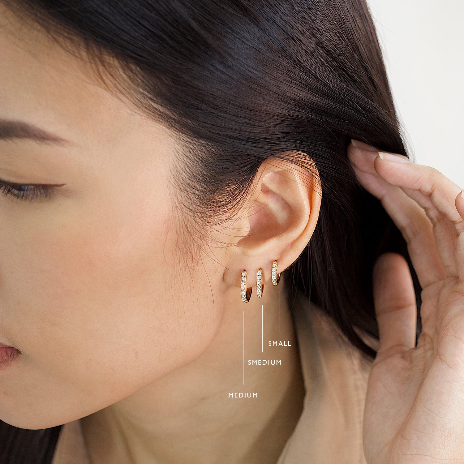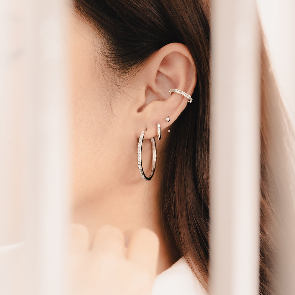 These simple hoop earrings were designed with two looks in mind – paved dazzling cubic zirconia stones on one side and plain on the back. Wear it backwards if you're going for a classy vibe, or wear it mismatched on both sides for a trendier style!