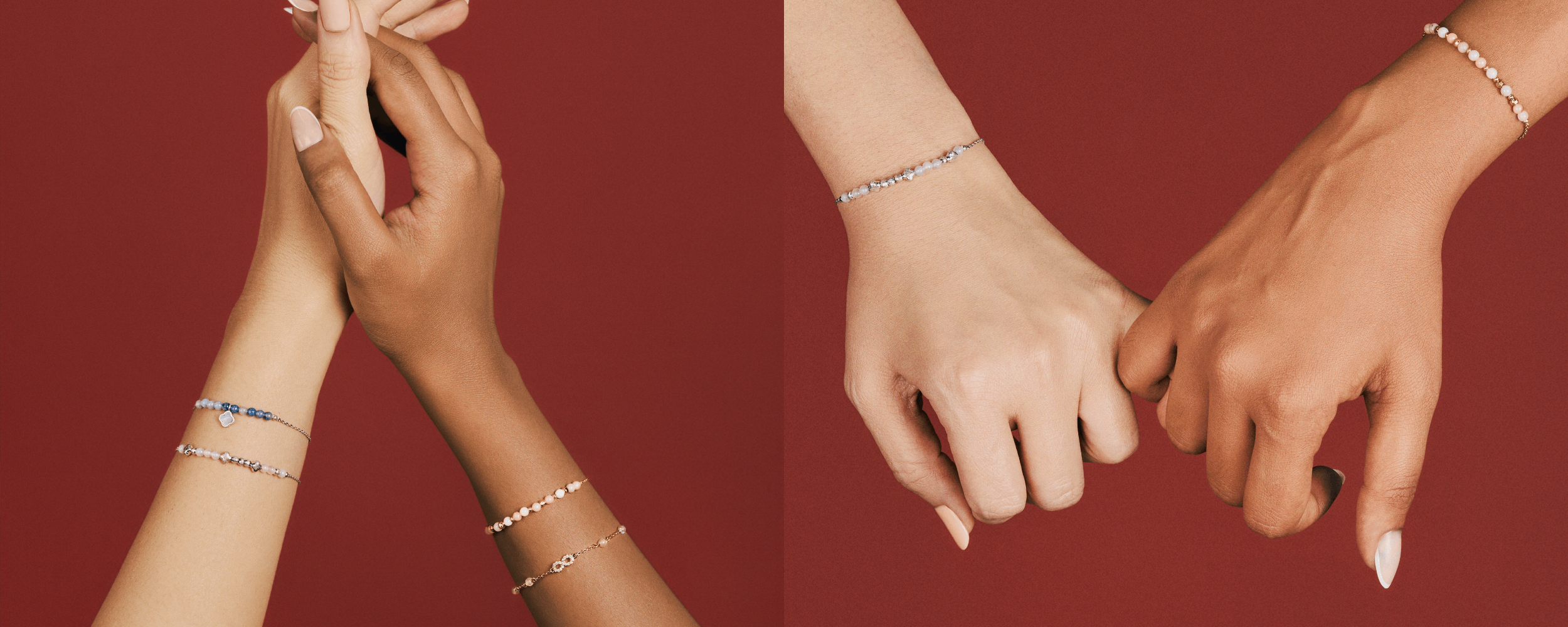 Taking cue from secrets shared between friends, a Morse code message lies hidden in the beaded design of selected bracelets from The Kindred Code collection.
