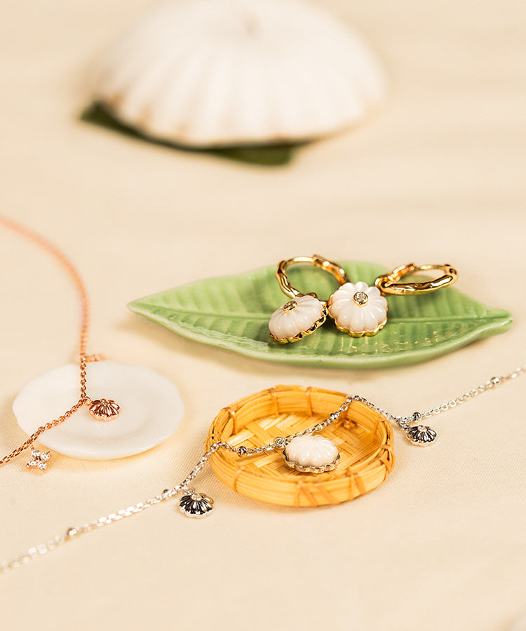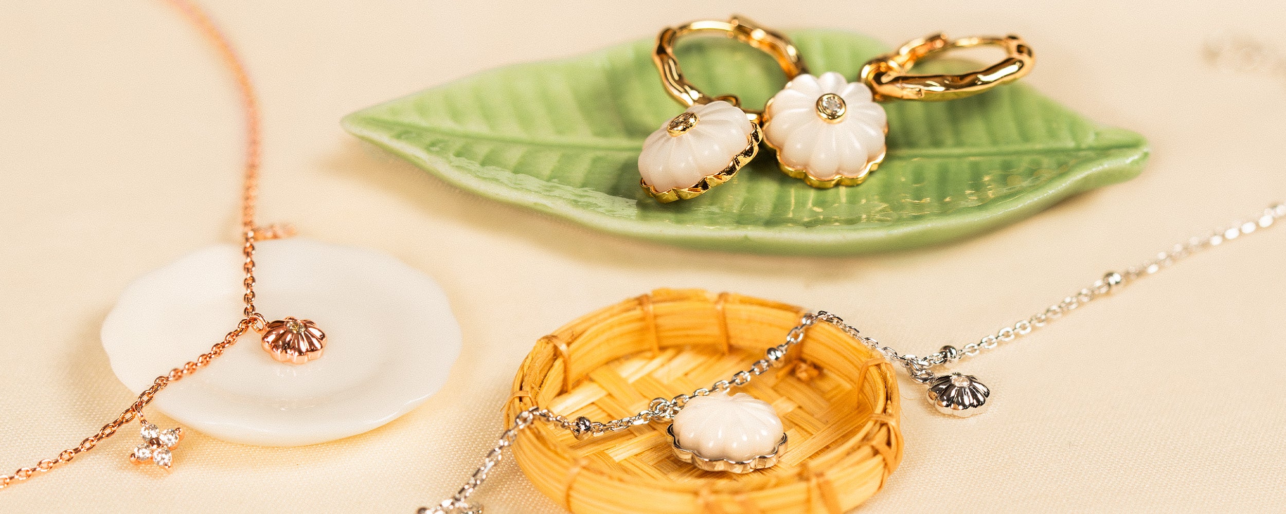 Inspired by the Tutu Kueh, a local sweet treat, the Tutu collection is a tasteful tribute to our shared love of food that connects us in meaningful ways. Adorned with opalescent mother of pearl and sophisticated freshwater pearl details, this refined array of wearable tiny treats is bound to delight.