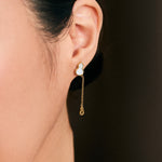 The opalescent mother-of-pearl finish on the Blessings Hulu Earrings represents bliss, while the dangle chain and charm design is a symbol of longevity. A dainty design inspired by the bottle gourd.