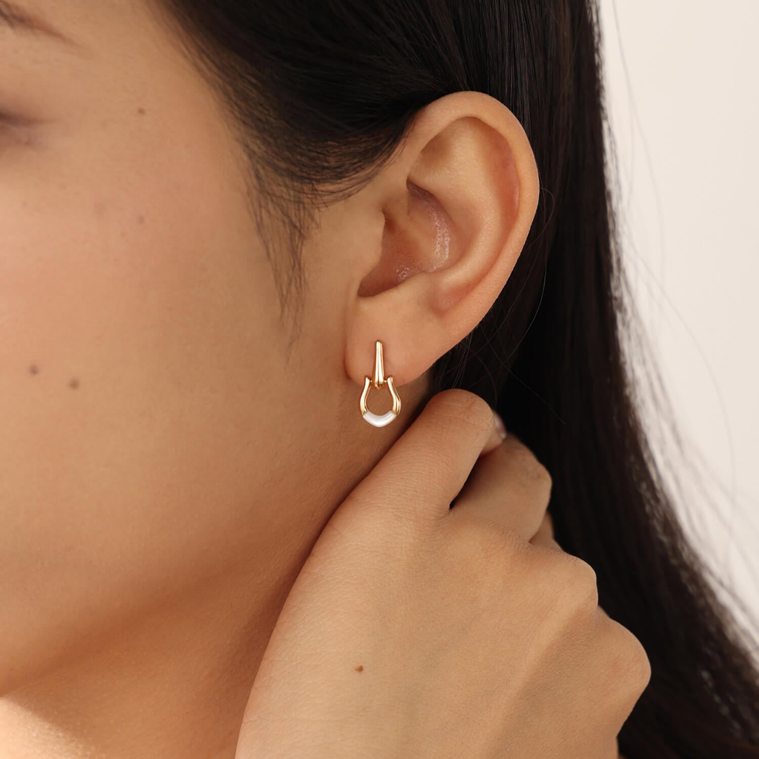 Embellished with an opalescent mother-of-pearl finish, these classic horseshoe earrings are a combination of the wild west aesthetic and everyday elegance. Make it a complete set with its matching necklace.