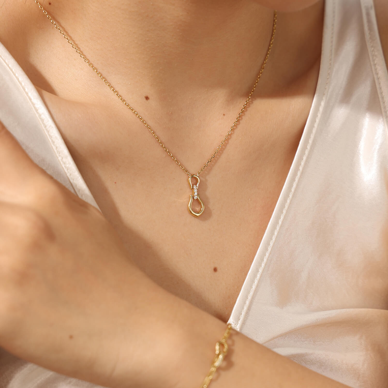 Held together by a cubic zirconia-embellished link, the Pippa Necklace features an asymmetrical pendant. A modern and contemporary take on the horsebit's classic double ring and bar design. Wear it with its matching earrings.