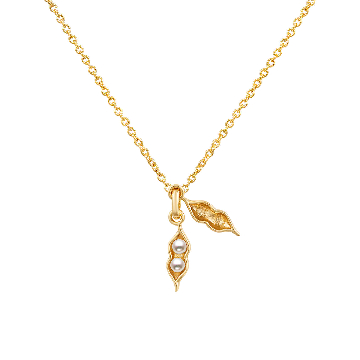 Unlike heart-shaped friendship pendants, the Sweet Pea Necklace doesn't break in half or come apart! Inspired by the idiom "two peas in a pod", the pendant on this necklace opens and closes to reveal two faux pearl beads. Perfect as a gift for a pair of friends. Available in our three signature finishes, this necklace works great for trios too!