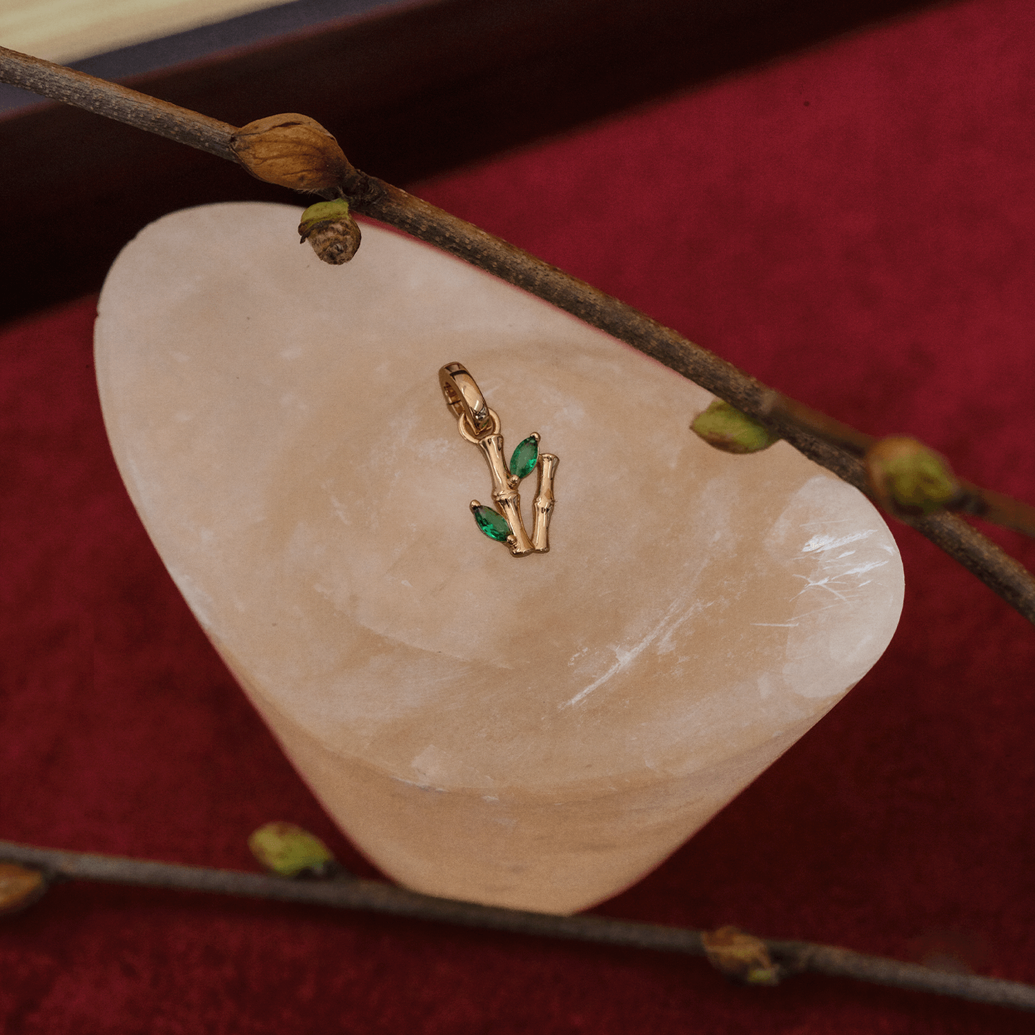 Deep-rooted in Eastern beliefs, bamboo is a symbol of strength, growth, and longevity. Embellished with cubic zirconia stones in a captivating shade of green, the Zhuzi Charm adds sparkle and a pop of colour to your choice of base jewellery.