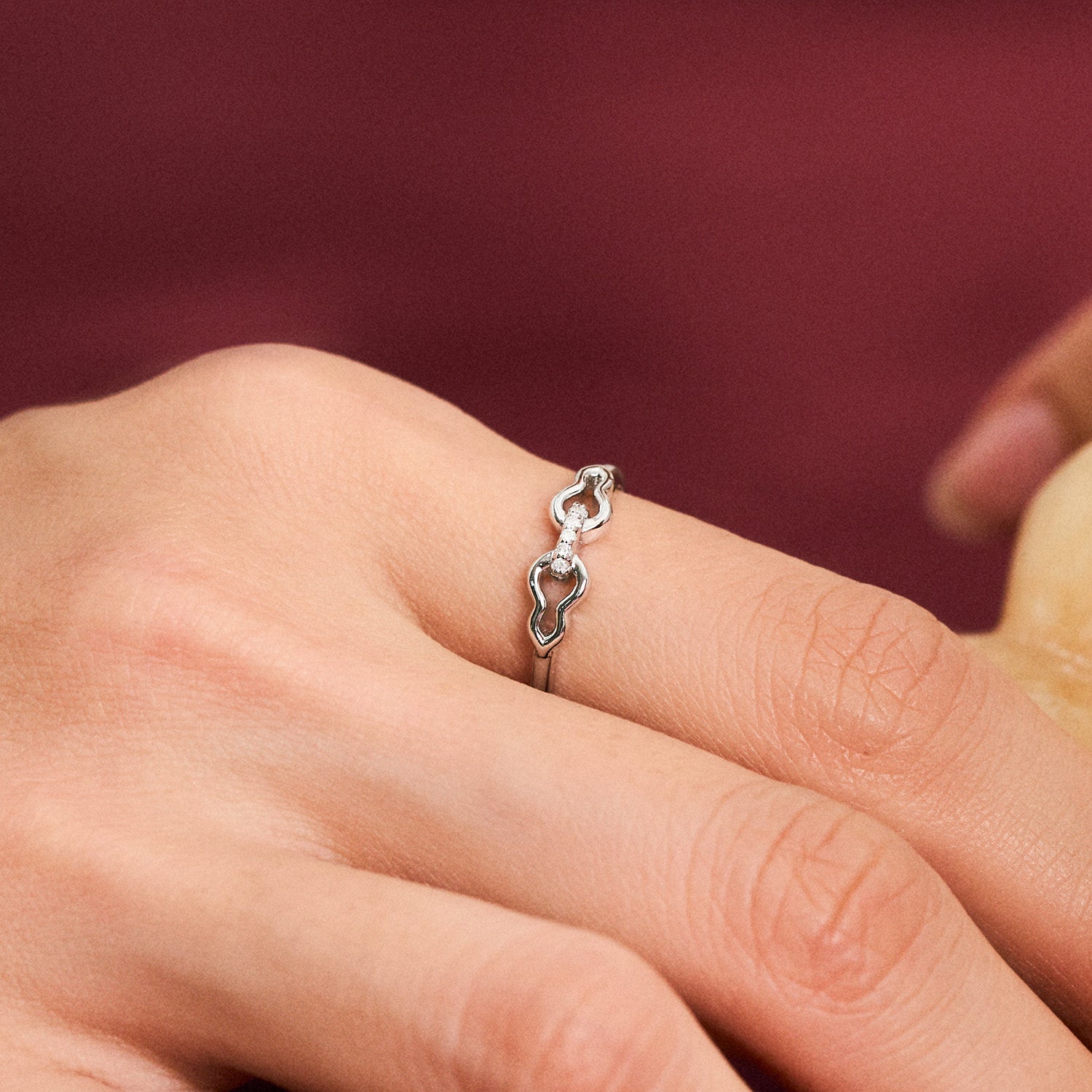 A modern iteration of double happiness and goodness in abundance, the Hulu Ring features a pair of bottle gourds connected by a cubic zirconia-encrusted link.
