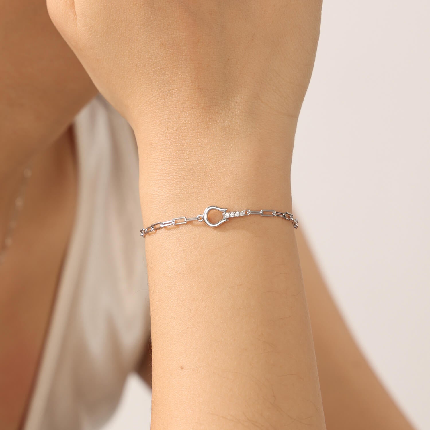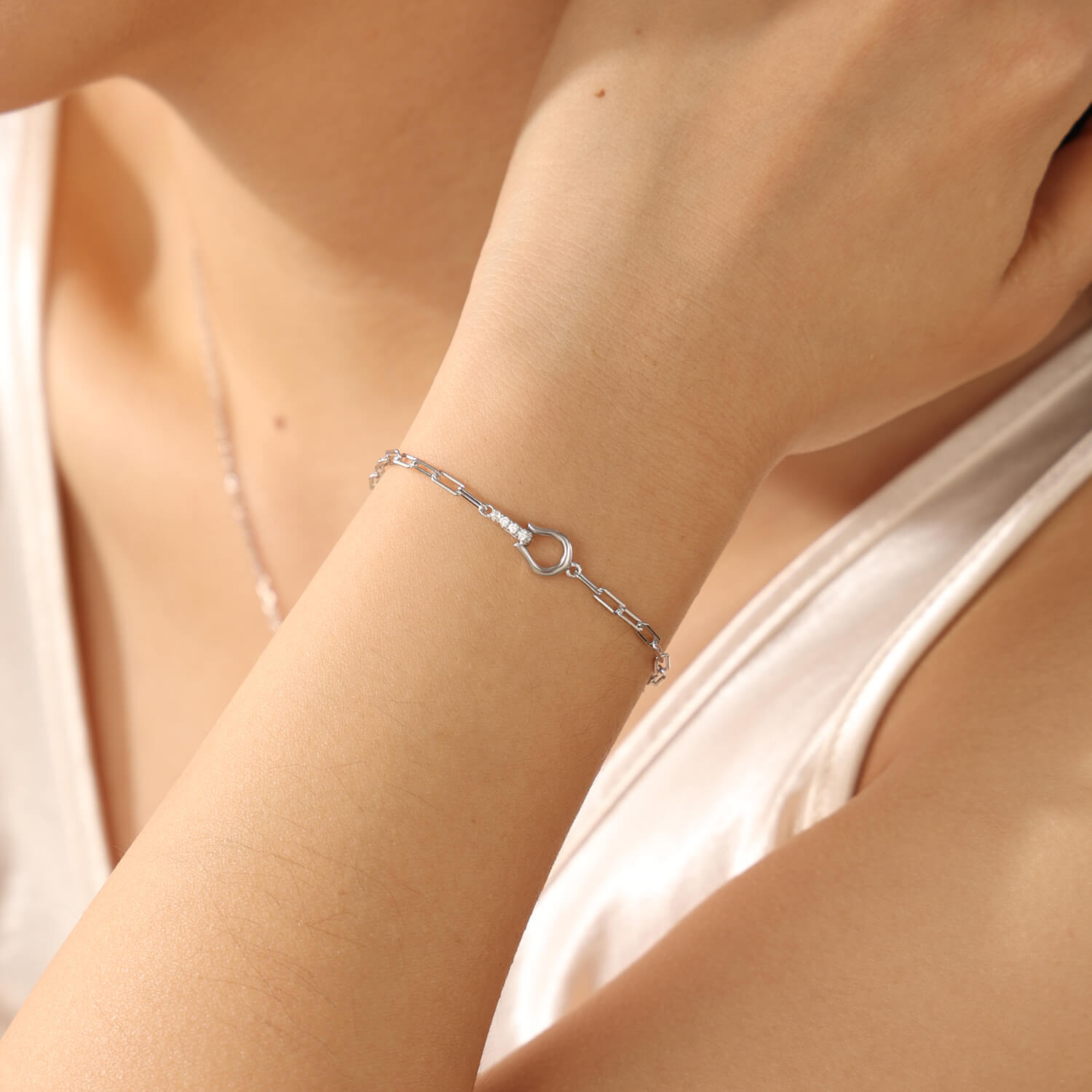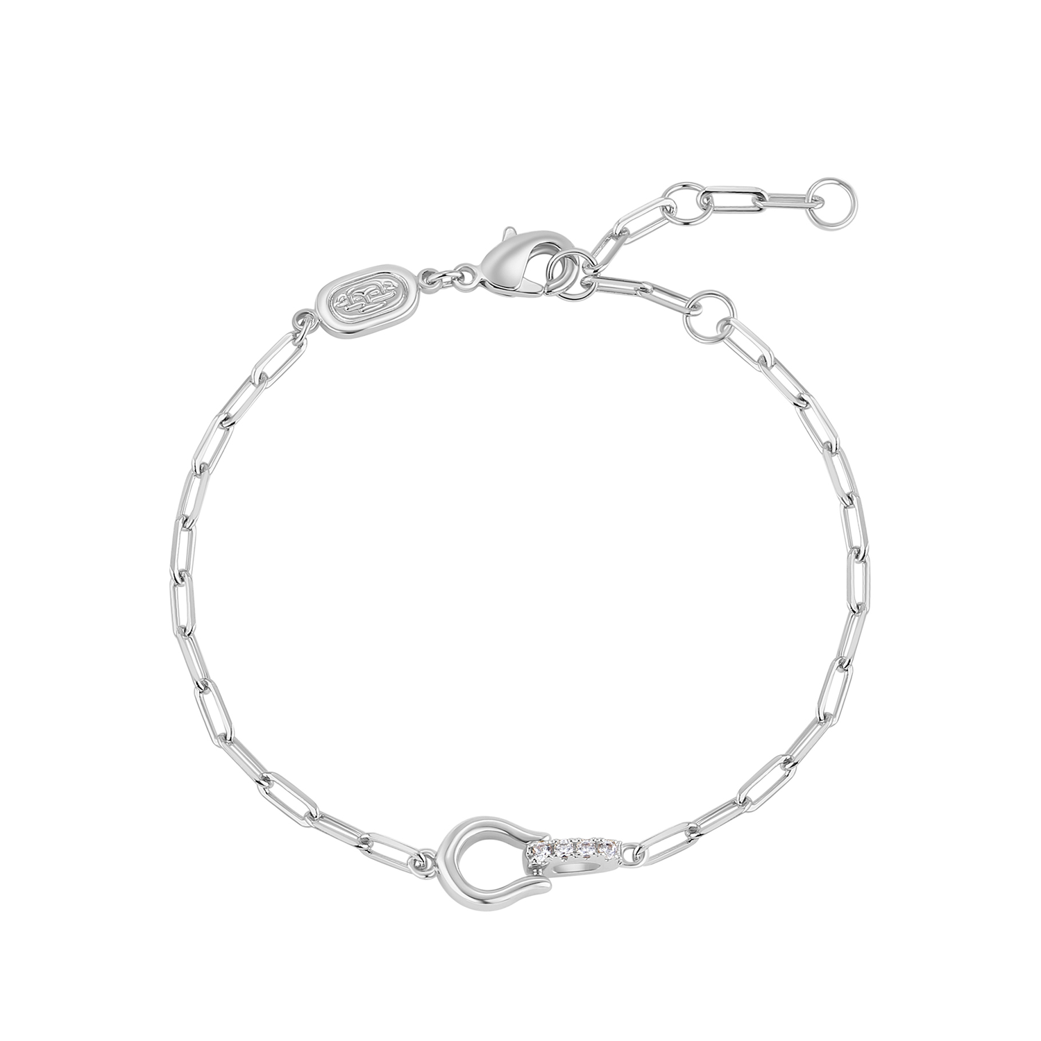 The interlocking pendant on Colt features wild west influences. Adorned with cubic zirconia, this subtle sparkle elevates the rugged aesthetic of the classic horseshoe motif.