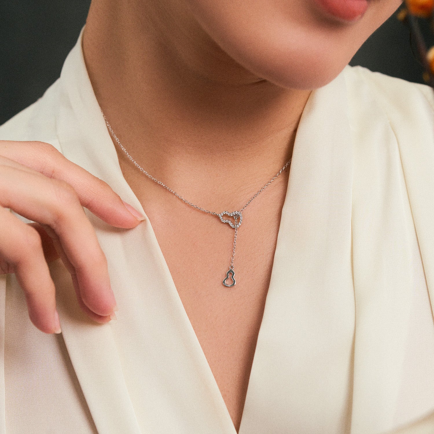 Designed with elegance and versatility in mind, the hulu (also referred to as the bottle gourd) pendants on this lariat necklace can be adjusted to your preferred length.