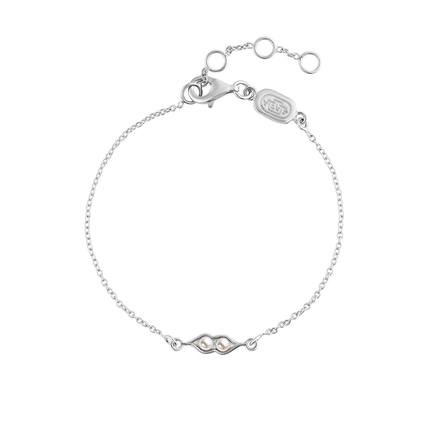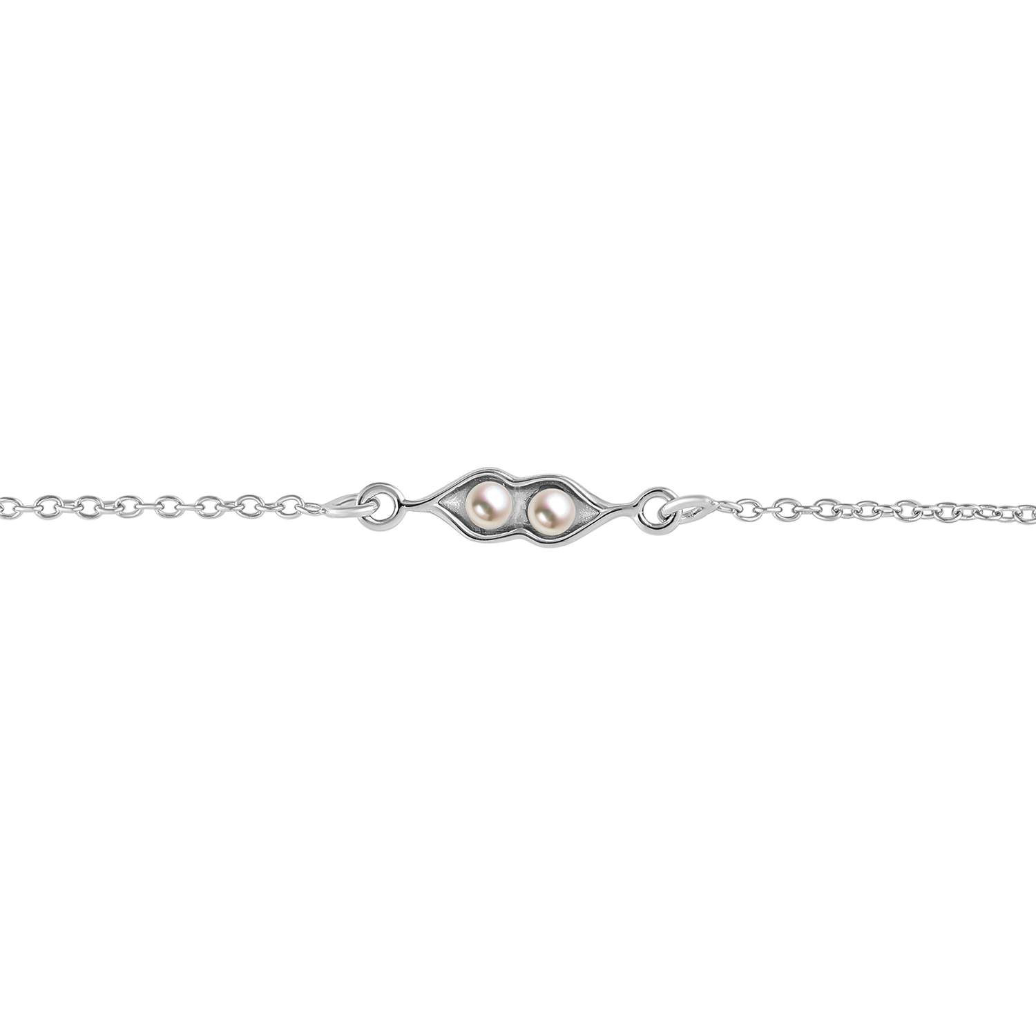Two faux pearl beads encased in a single pea pod - this is the idiom "two peas in a pod" in wearable form! Perfect as a gift for a pair of friends. Available in our three signature finishes, this necklace works great for trios too!