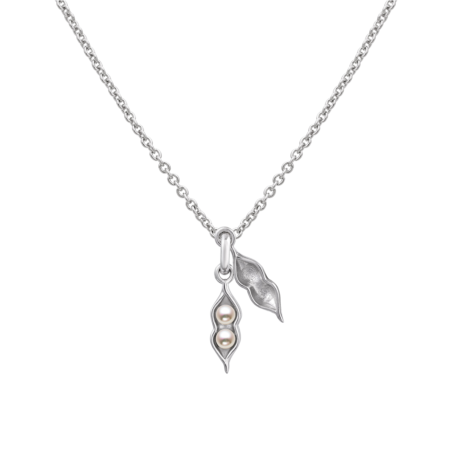 Unlike heart-shaped friendship pendants, the Sweet Pea Necklace doesn't break in half or come apart! Inspired by the idiom "two peas in a pod", the pendant on this necklace opens and closes to reveal two faux pearl beads. Perfect as a gift for a pair of friends. Available in our three signature finishes, this necklace works great for trios too!
